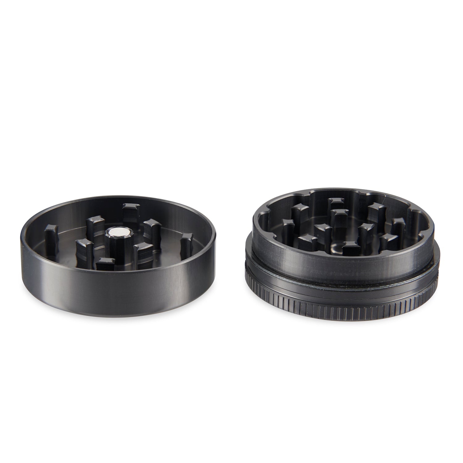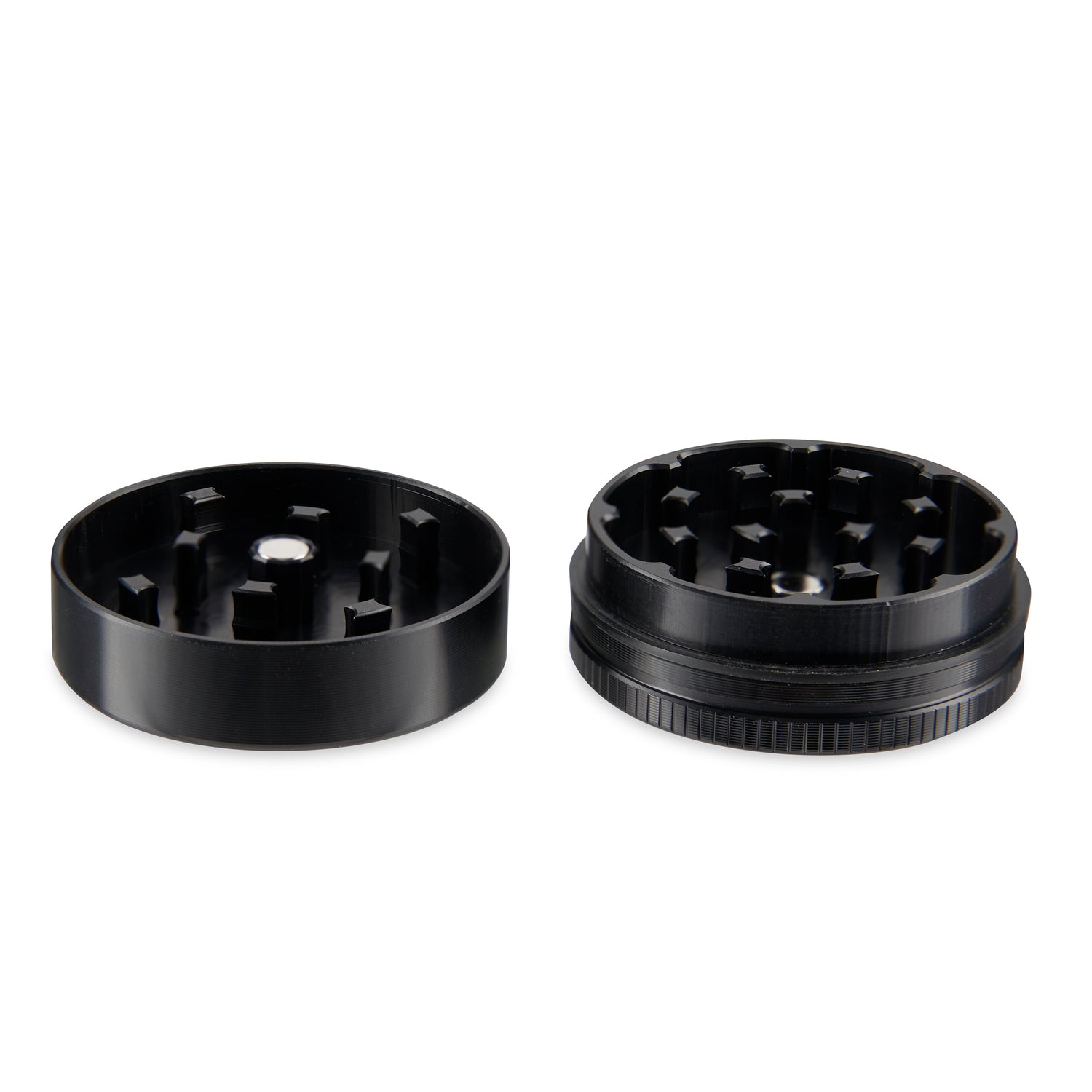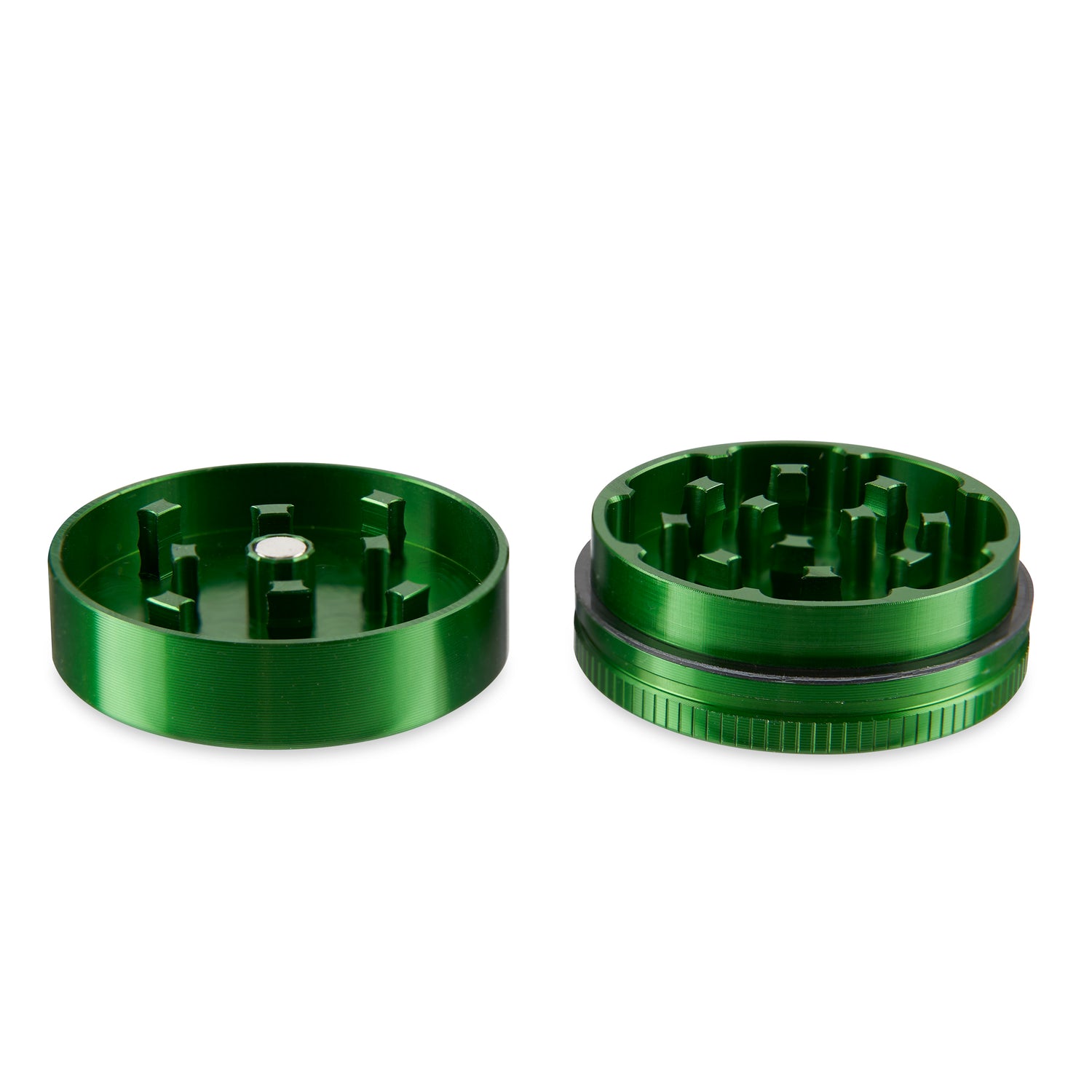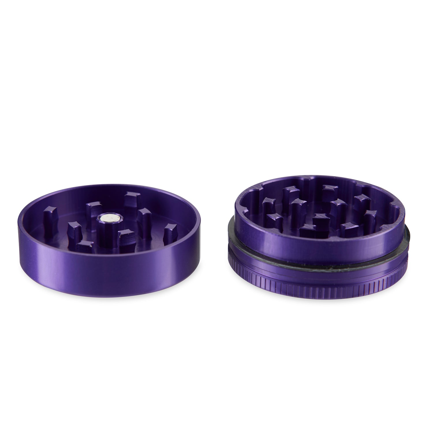 ALUMINUM | This 2-piece herb grinder is made of aluminum and has an anodized finish that prevents scratches and keeps the grinder turning flawlessly.