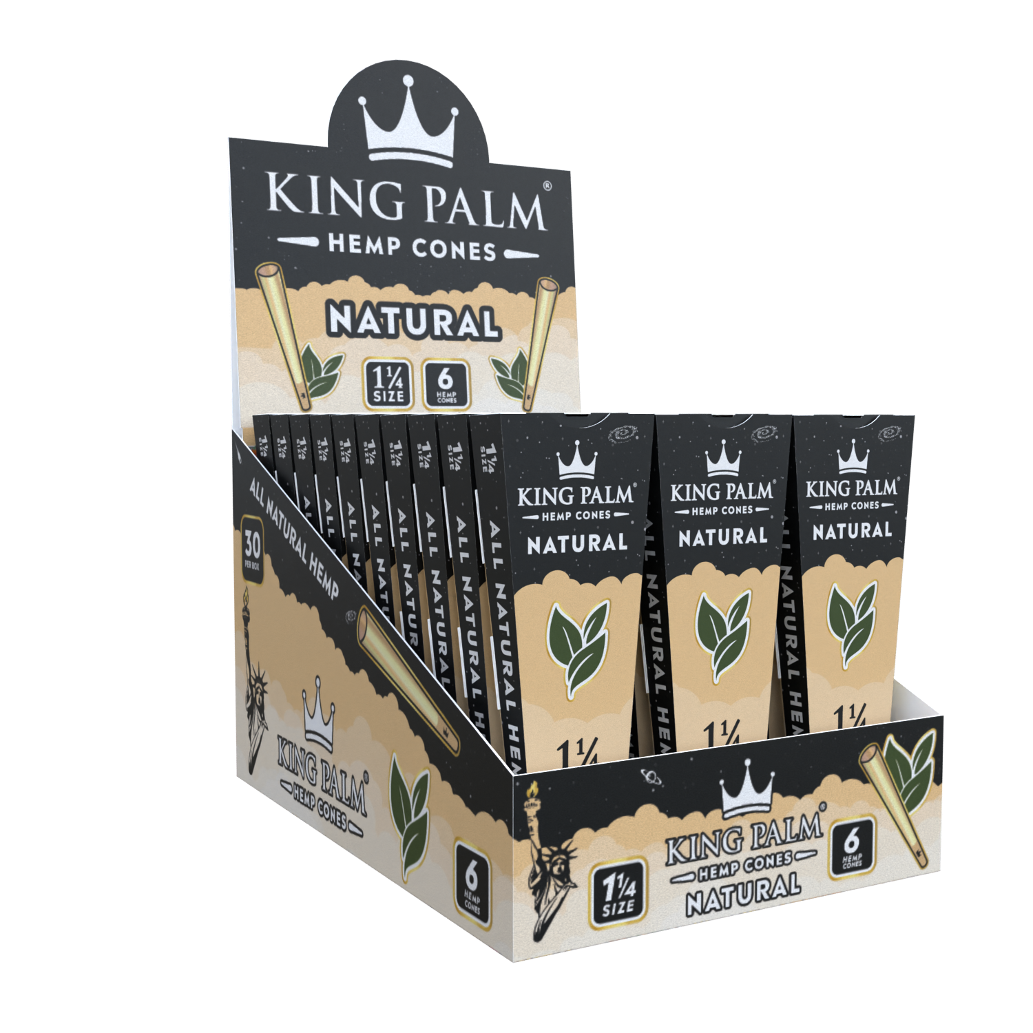 King Palm 1 ¼ Size Hemp Cones 30ct Display – Natural