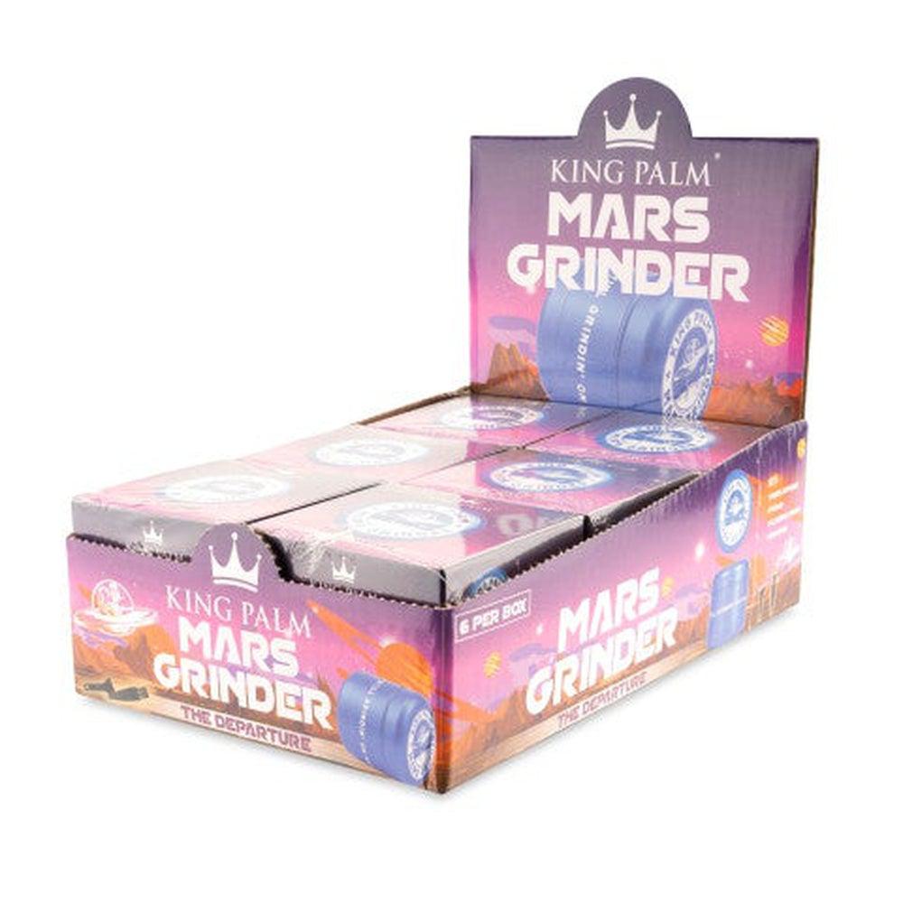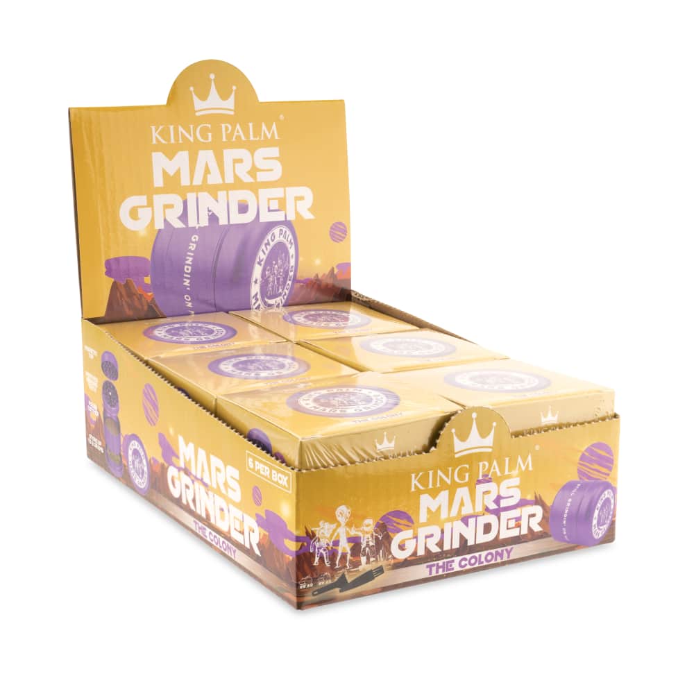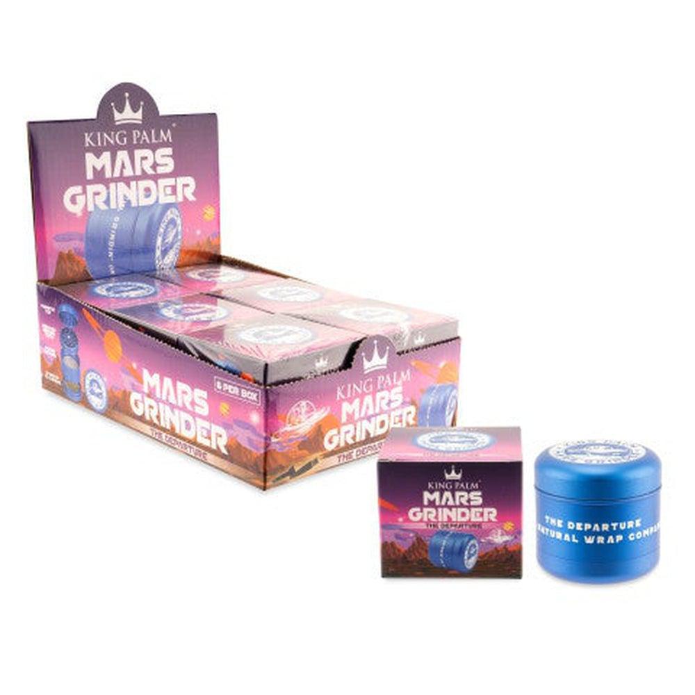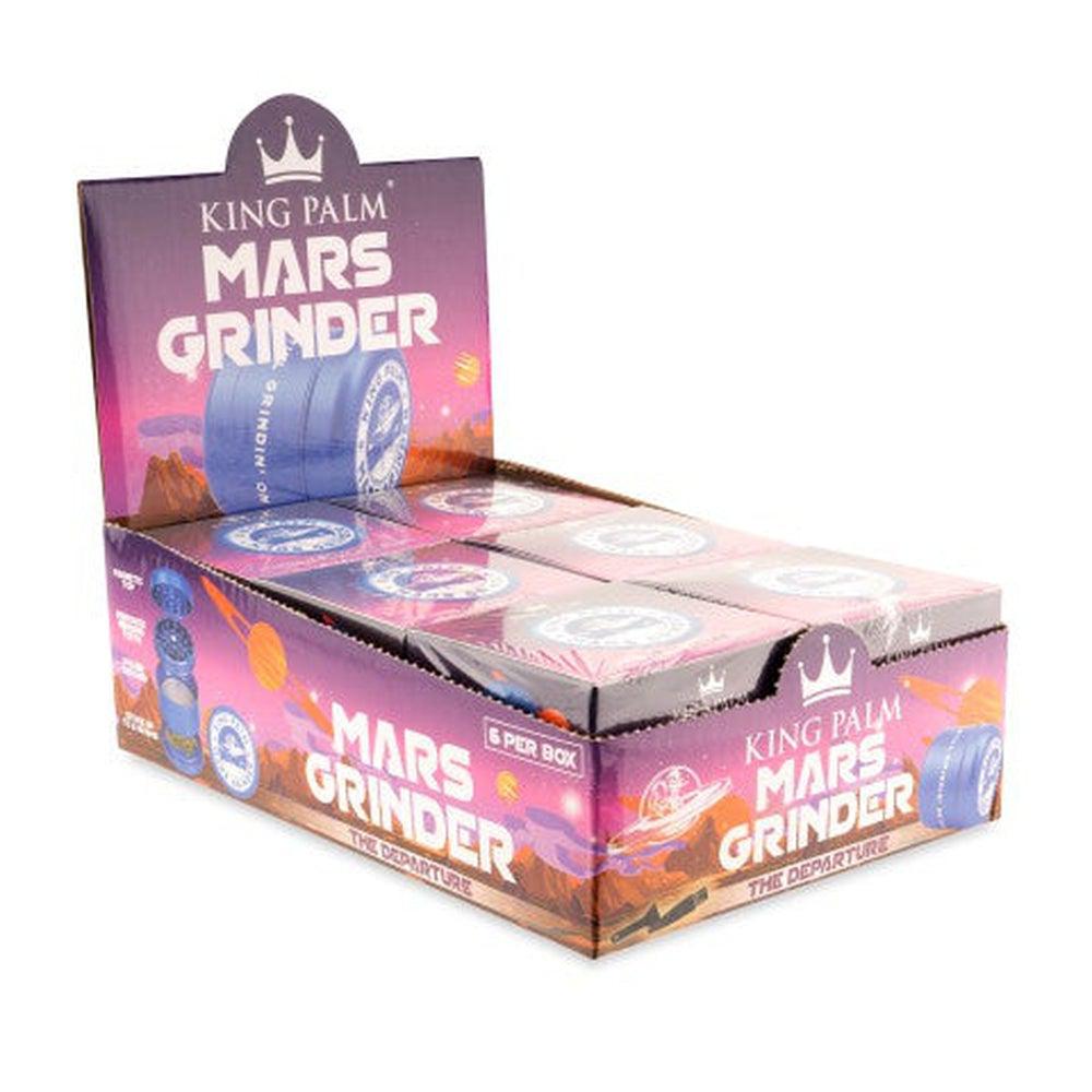6CT DISPLAY | This cardboard POP display includes 6 individually-boxed 4-piece Mars grinders. Set King Palm accessories next to the selection of wraps so customers can stock up on their favorite brand.