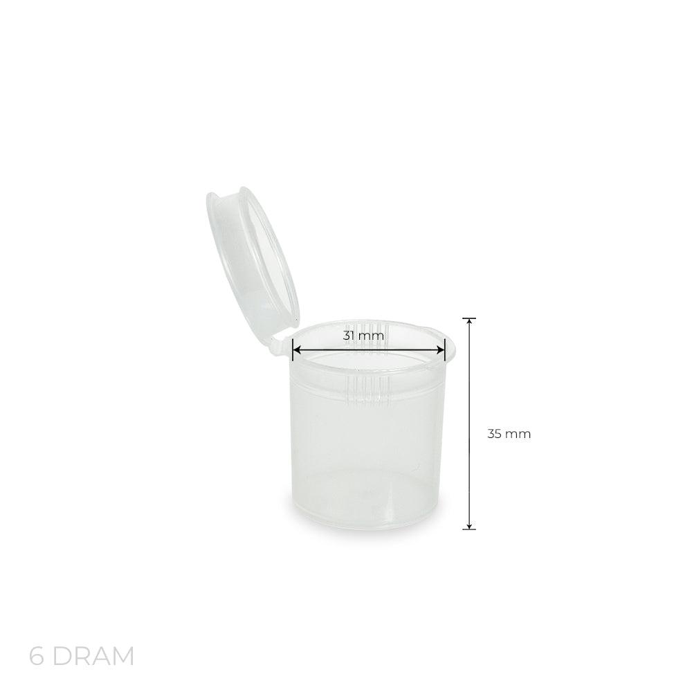 - 6 Dram - 1 Grams per bottle - 600 Bottles per case - 1.69" deep and 1.09" wide