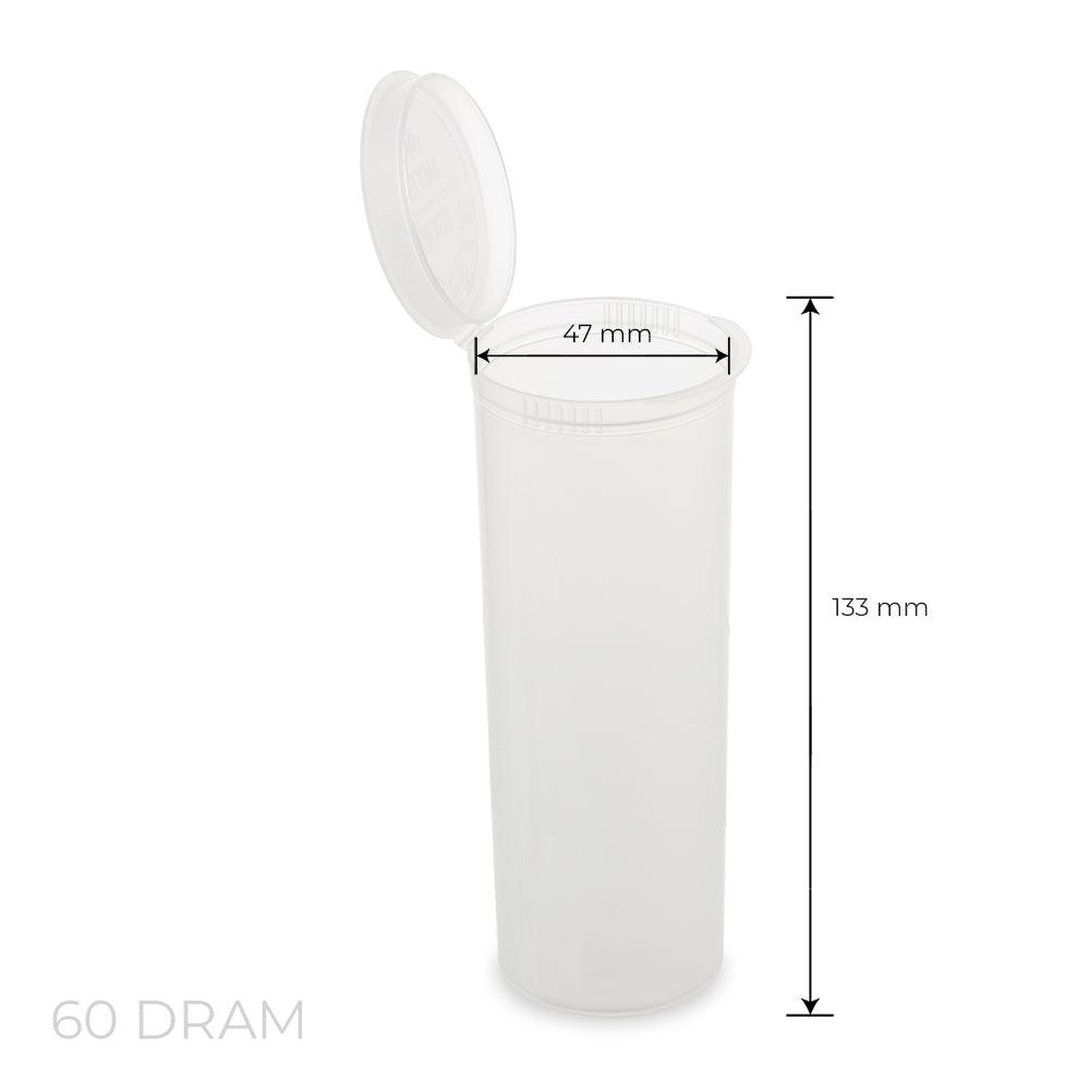 Loud Lock pop top 60 dram vials keep dry herb contents safe, secure, and undetected with child resistant squeeze to open lids. Store up to 14 grams in this smell proof, airtight bottle. Each pack includes 75 individual clear pieces.