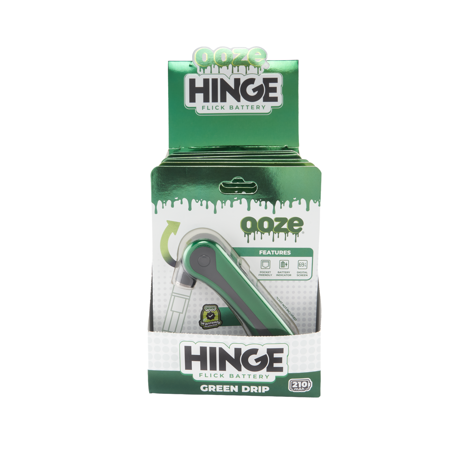 The Ooze Hinge is a 510 vape battery designed to look like a car key fob, or a folding utility tool. The 210 mAh device is made for on the go use; use the side button to flip the cartridge into position and fold it back into itself for storage. It features a digital screen with flex temp and a battery indicator. The center button controls the device. The battery has a type-c charging port, but does NOT include a charging cable. Available in 5 colors.