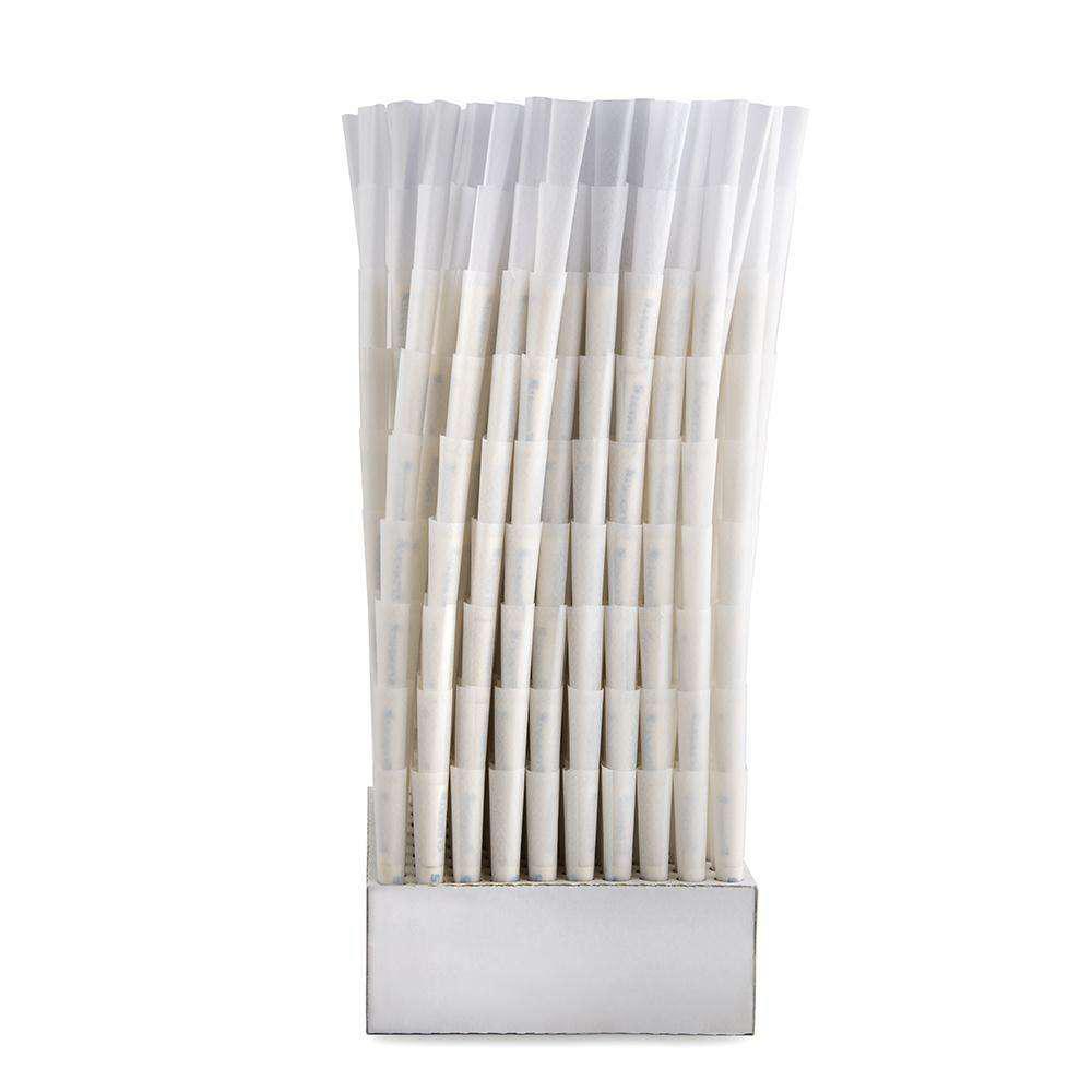 Pack 900 pre-rolls with this bulk box from Elements. These 1 1/4 size white rice paper cones burn slow and evenly. Each cone is rolled with a white paper filter tip with Elements branding.