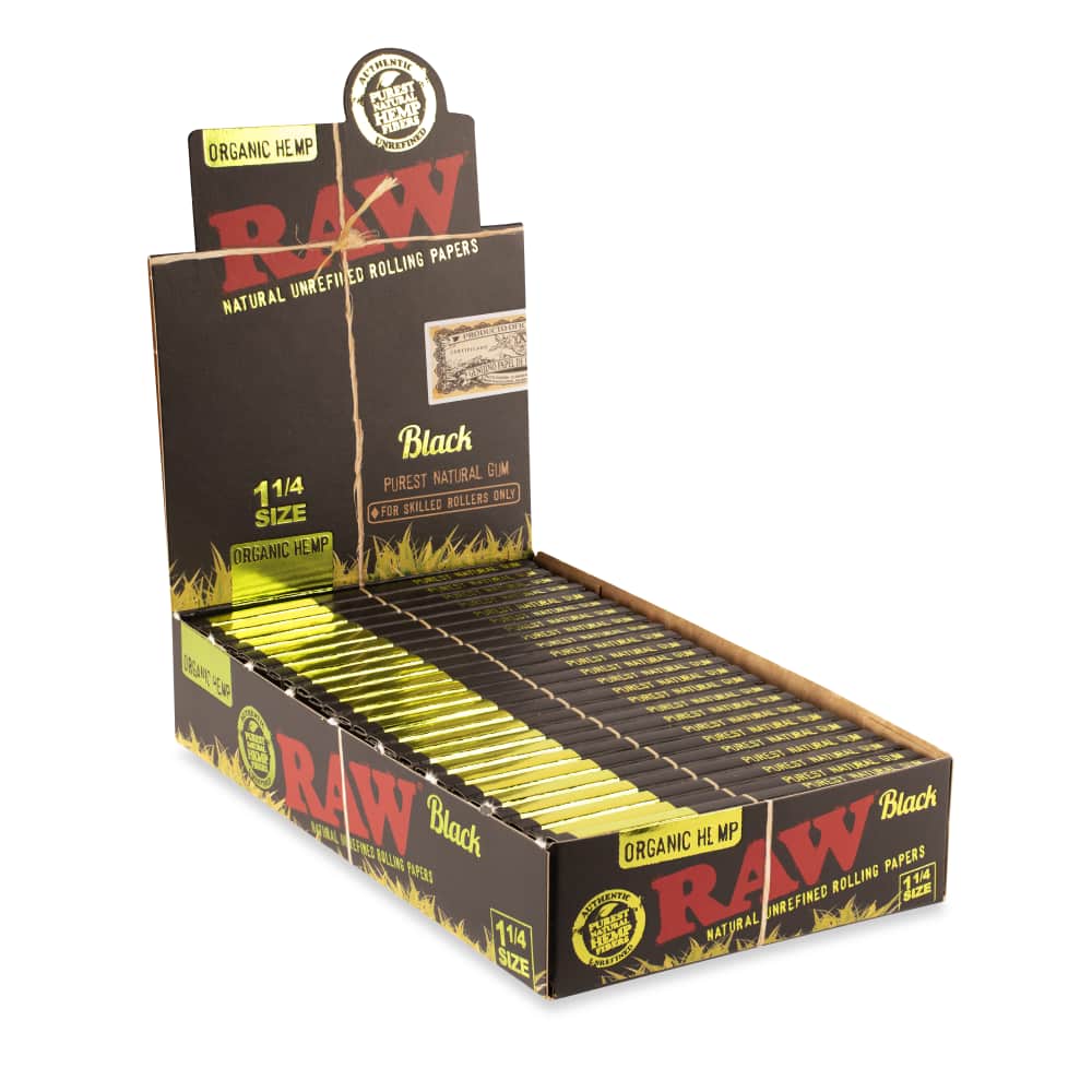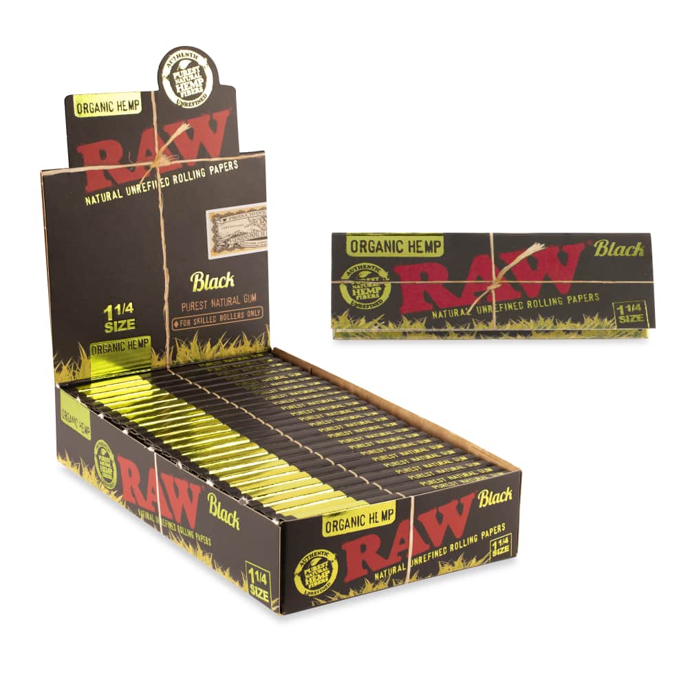 - RAW ORGANIC BLACK | RAW Black Organic Hemp papers are the absolute thinnest rolling papers RAW makes. They were created to celebrate RAW’s 16th anniversary, and are said to be their slowest-burning option.