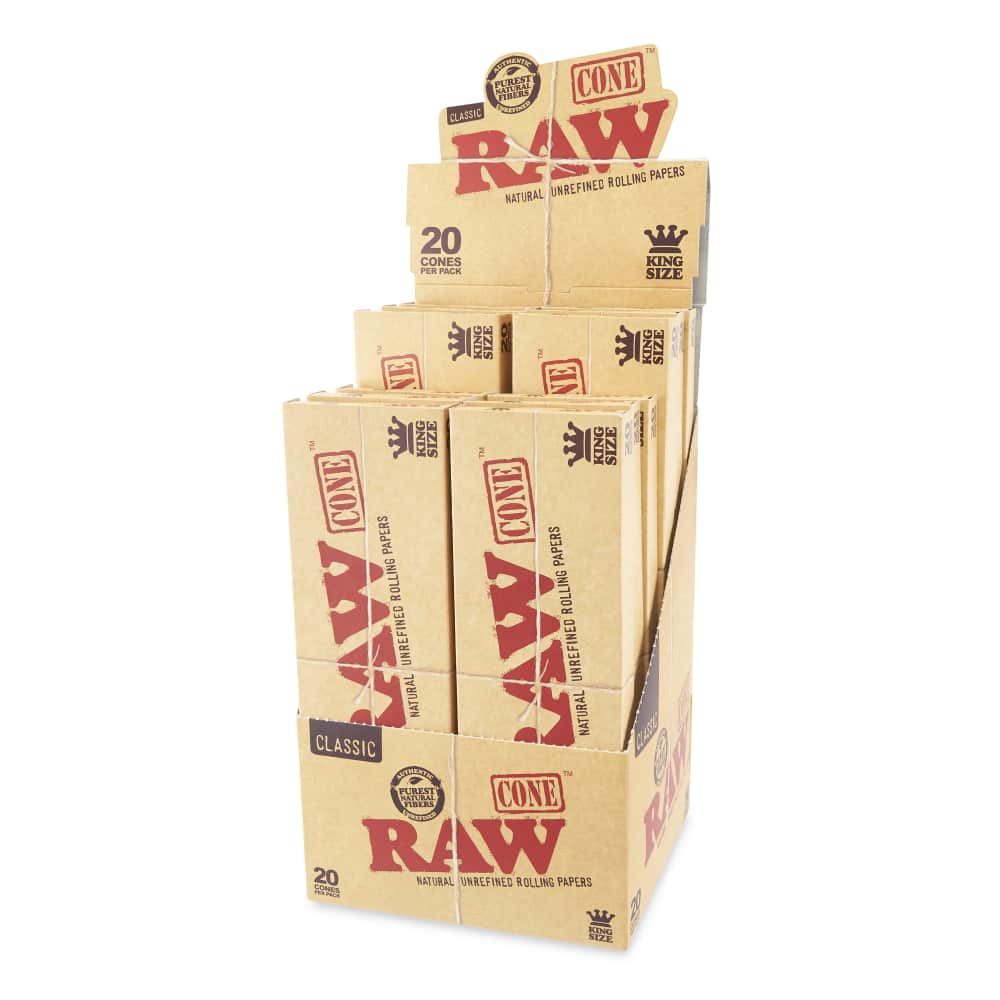 RAW Classic King Size Cone 20pk Box – 12ct POP Display is backordered and will ship as soon as it is back in stock.