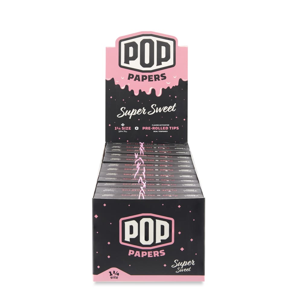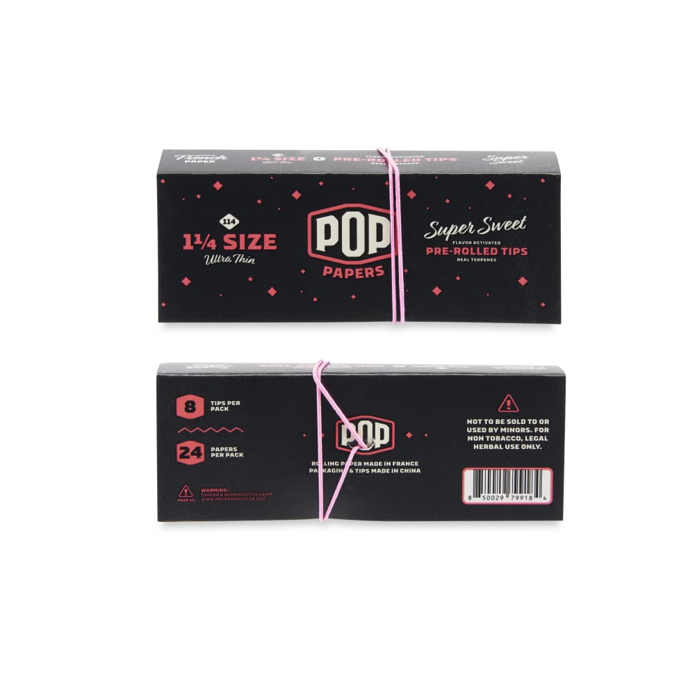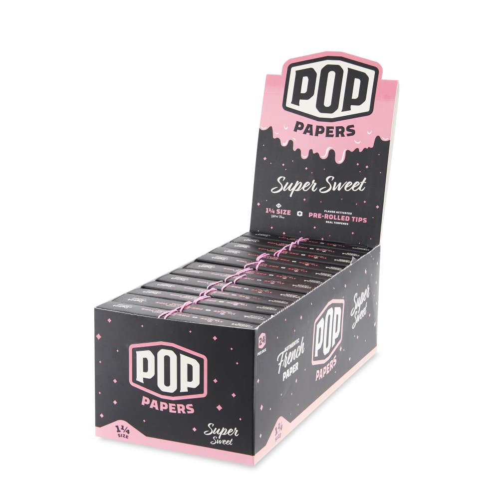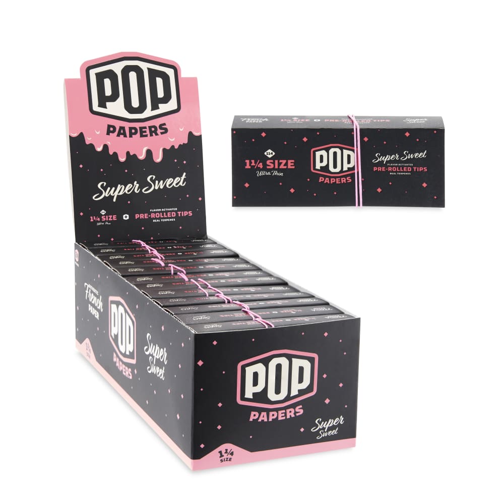 Pop Papers 1 ¼ Size Rolling Papers with Pre-Rolled Flavor Filter Tips 24ct Display