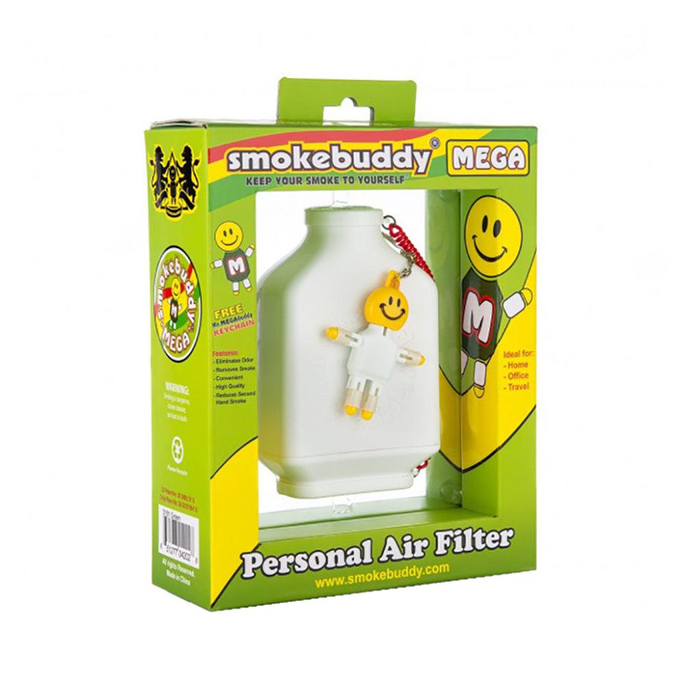 Smokebuddy MEGA is our newest smokebuddy. Designed with a filter twice as large as the Original Smokebuddy. The flat shape fits in your hand and looks great. Every Smokebuddy MEGA includes a MEGA size Mr. MegaBuddy LED keychain that will light up when you squeeze him.Smokebuddy MEGA will last the heavy users months and possibly years. The Smokebuddy MEGA is a handy, and reliable, life saving air filter. Simply exhale your smoke through your easy-to-use Smokebuddy MEGA and odorless air comes out the other end. Smoke where you want, and when you want without anyone knowing the wiser. Keep second hand smoke away from friends, family, and neighbors with your Smokebuddy MEGA.