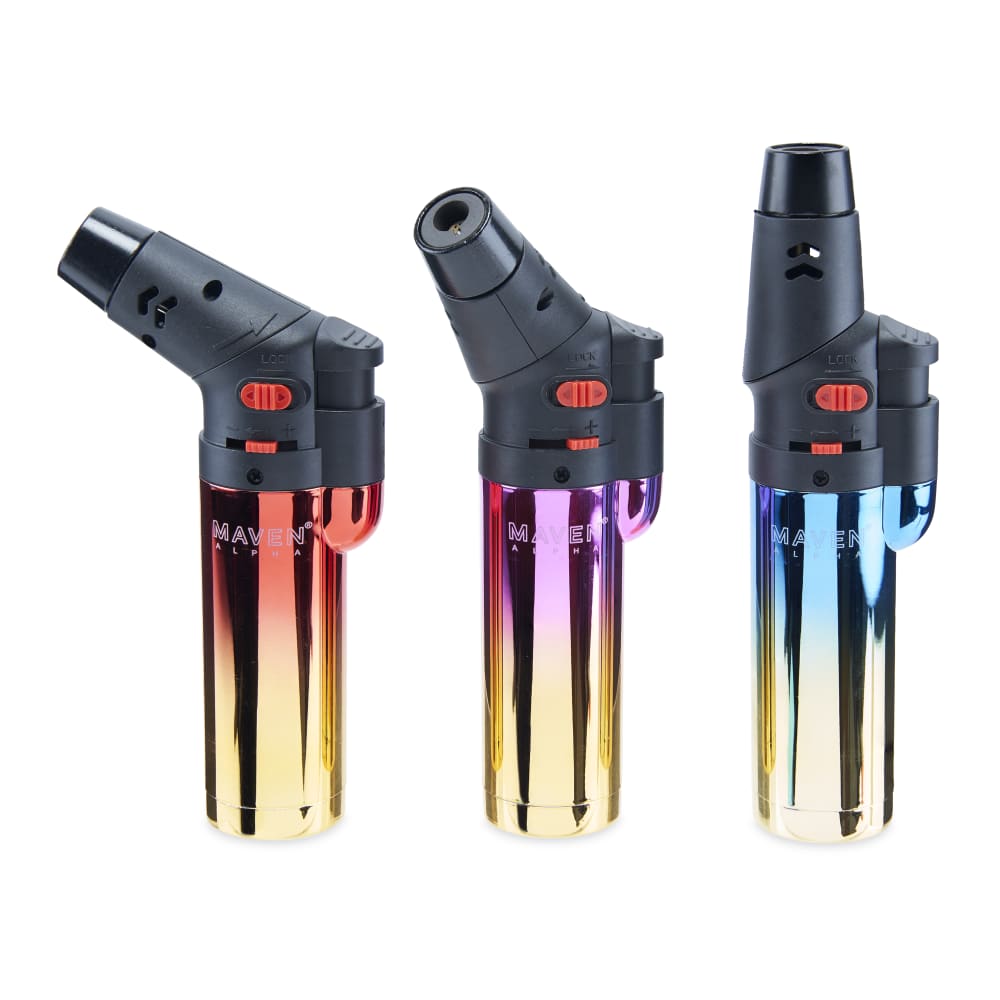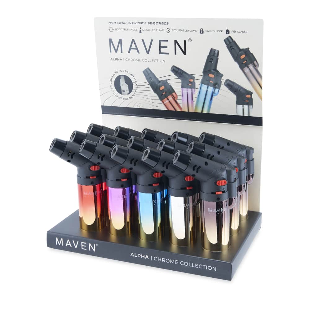 Maven Alpha Butane Torch Lighter 15ct Display – Assorted Chrome
