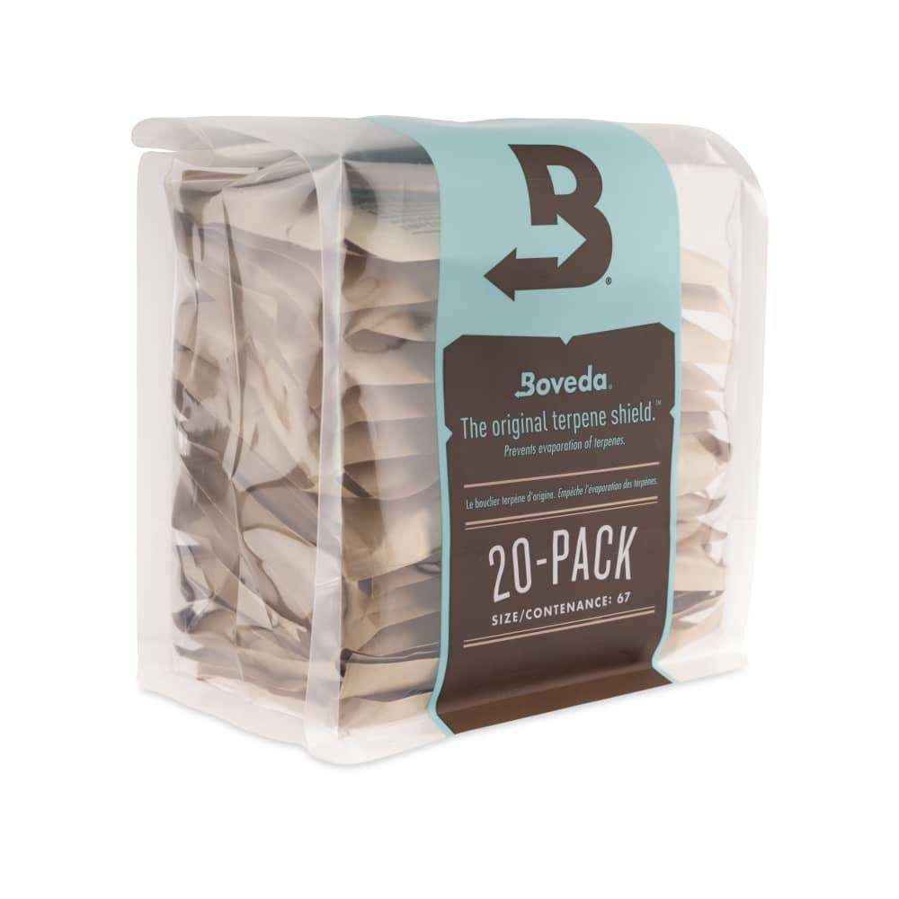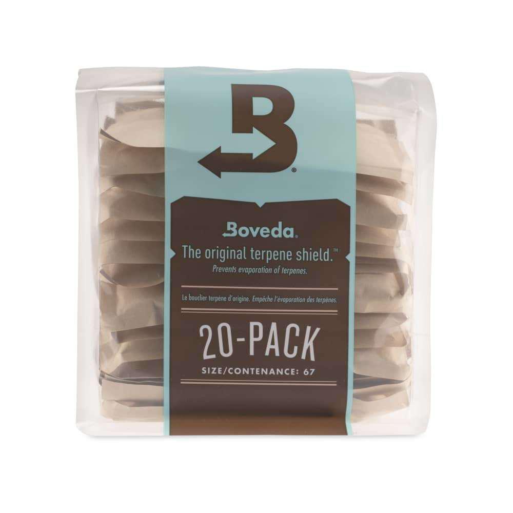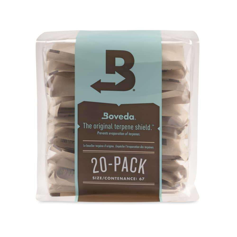 The 67g size is great for storing bulk product. One 67g pack protects up to 1 pound of flower. This 20ct box is awesome for growers and processors that need to store lots of bulk bags.