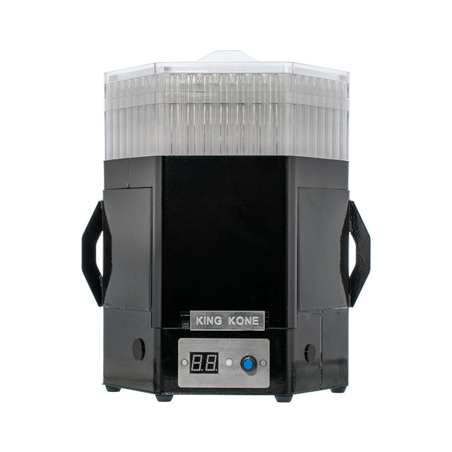 Pack your pre-rolls quickly and efficiently with the King Kone Version 2, a cone-filling machine that can pack 169 cones in 5 minutes, and over 1,000 cones per hour! This is a quieter, sleeker version of the original King Kone. This is a compact machine that doesn’t take up much space and can be operated by one person, 1,000% faster than manual packing.