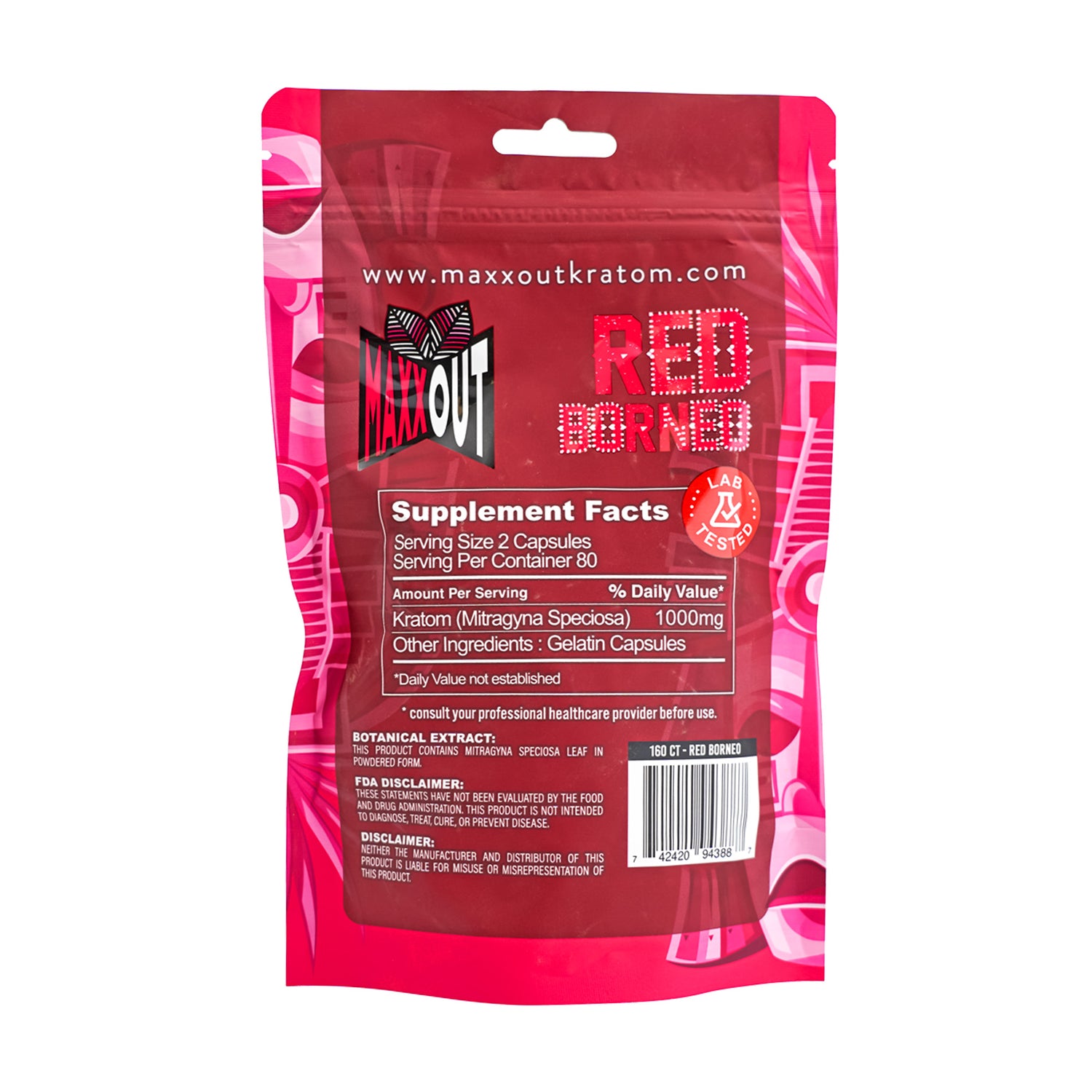 MaxxOut Kratom powder capsules are available in a variety of kratom strains. Each bag contains 160 kratom capsules. One serving size is two capsules, so each bag contains 80 servings. Pouches are resealable. Available in 4 kratom strains.