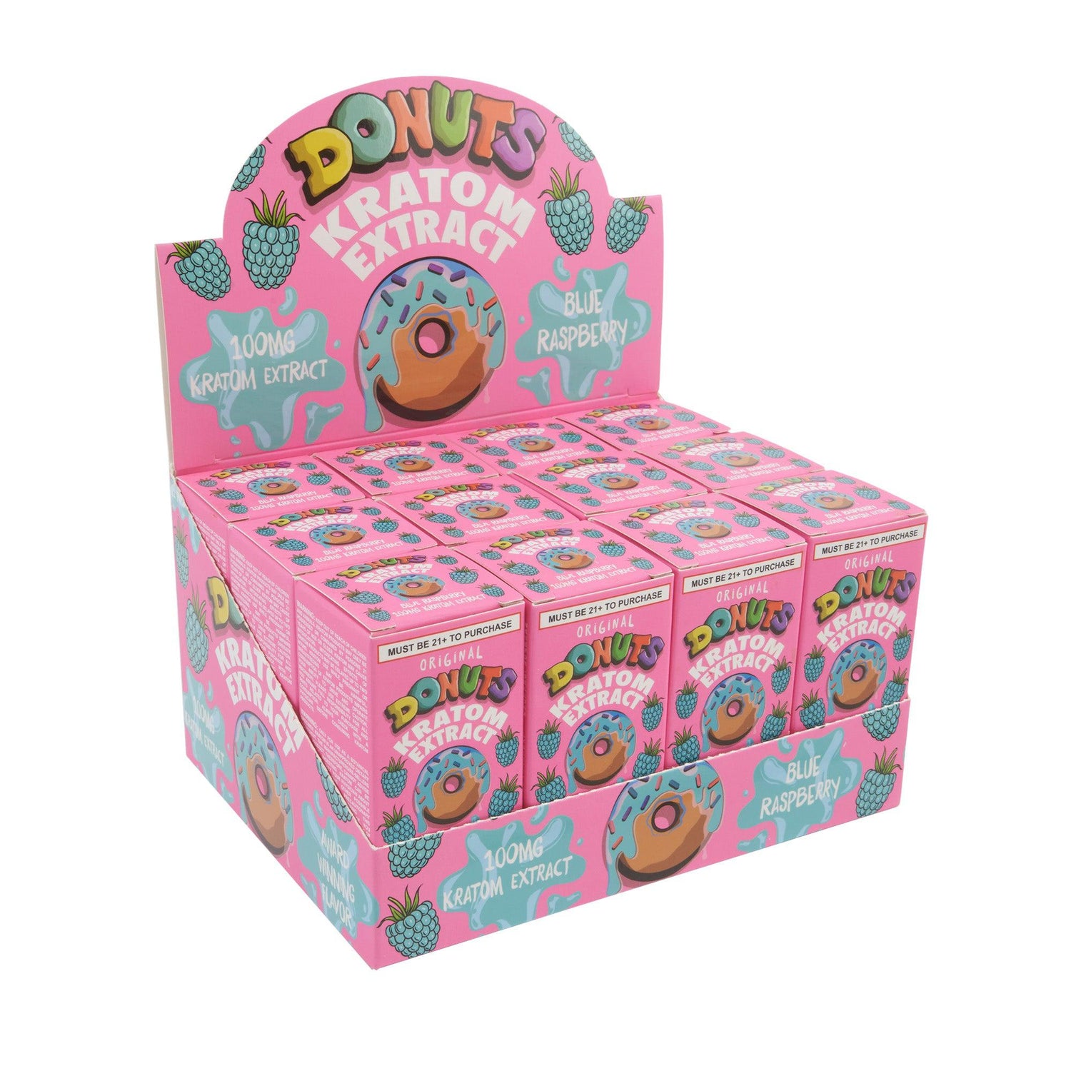 Donuts Kratom Shots use Donuts’s exclusive “Golden Kratom Extract” made from expertly-sourced, quality kratom leaves. Each 1oz bottle contains 100mg of the Golden Kratom Extract and roughly 45mg of Mitragynine. The suggested serving size is 1/3 of the bottle. These shots come in 12ct displays in 5 flavor options.