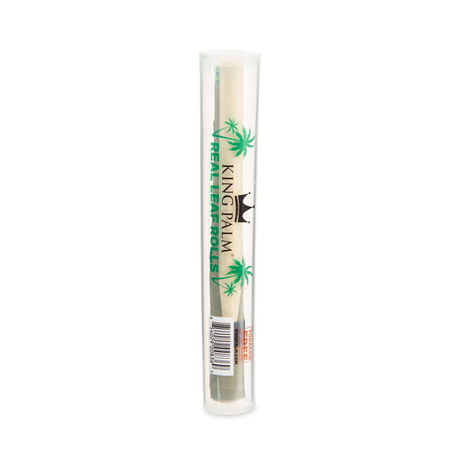 King Palm natural leaf tubes are now available in single counts! This dispensing display includes 50 individually packaged slim size rolls in clear pop top tubes. King Palm king size rolls have a 1.5g capacity and an unflavored corn husk filter.
