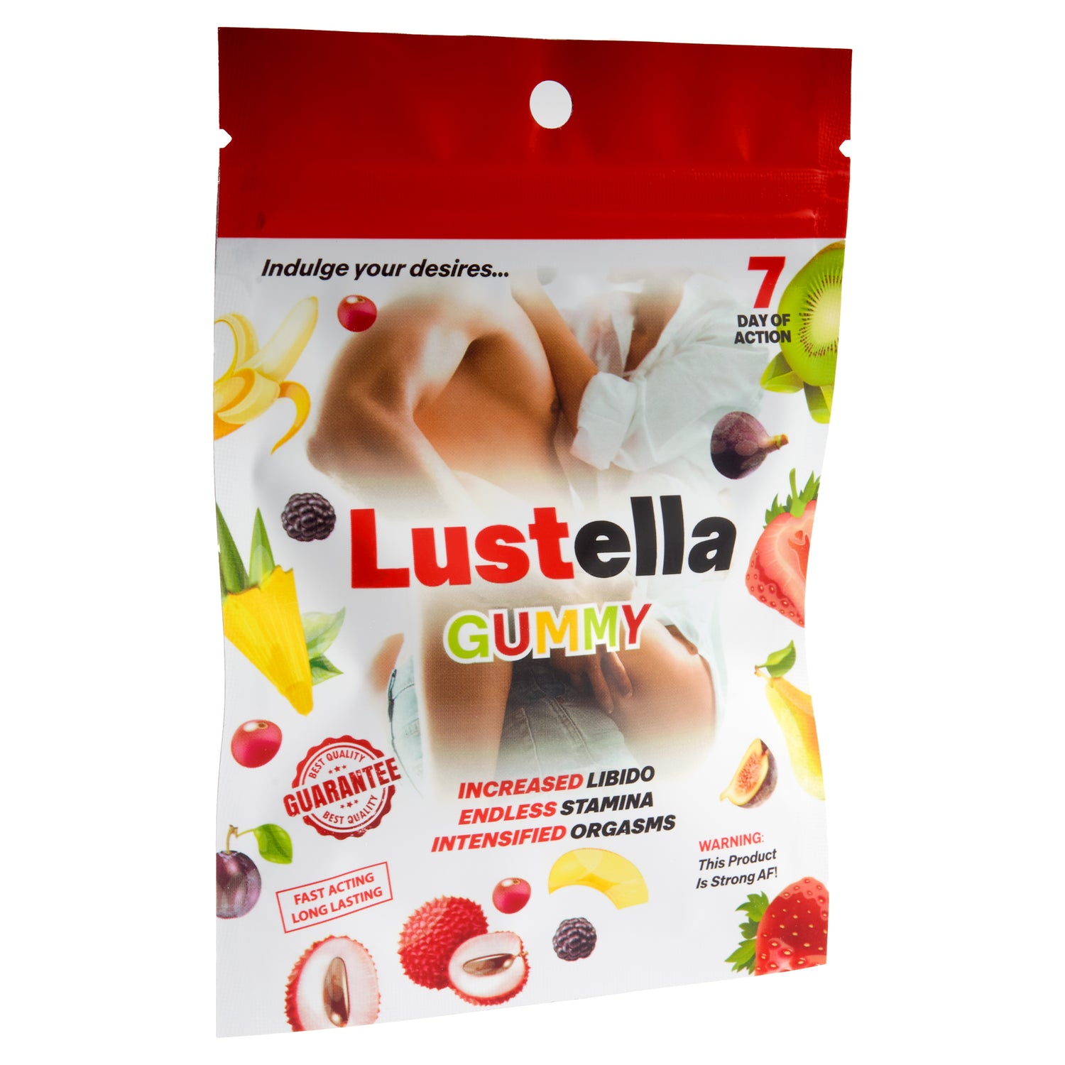 Lustella Enhanced Gummies are made to increase libido and amplify sensuality. These fruity gummies come packed in a resealable pouch with a single gummy. These products are incredibly strong and effects can last up to 7 days. Displays include 24 gummies.