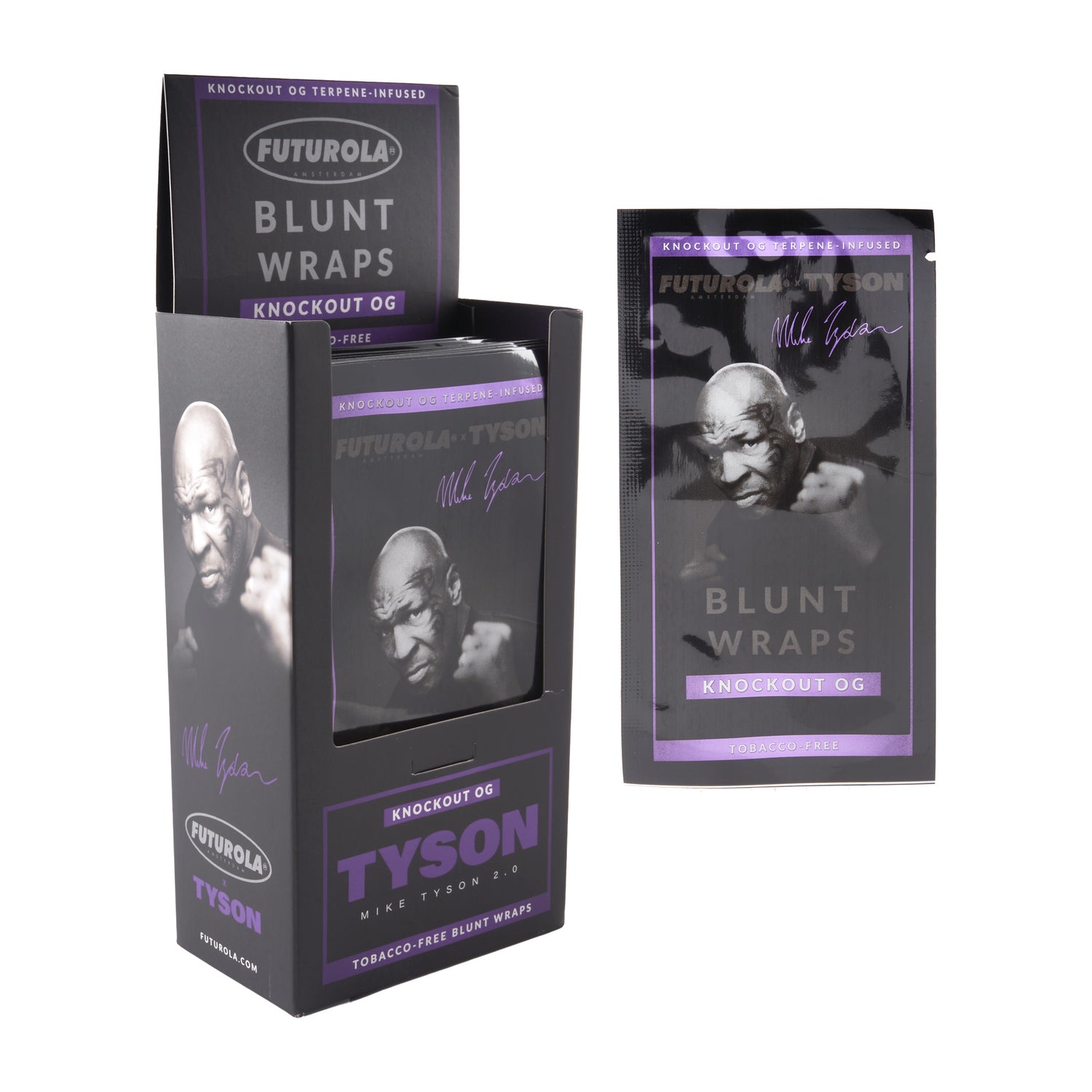 Futurola x Tyson blunt wraps are infused with Knockout OG terpenes for a robust smoking experience. These wraps are tobacco-free, but still provide the blunt performance customers are looking for. Wraps are packaged individually in a 12ct display.