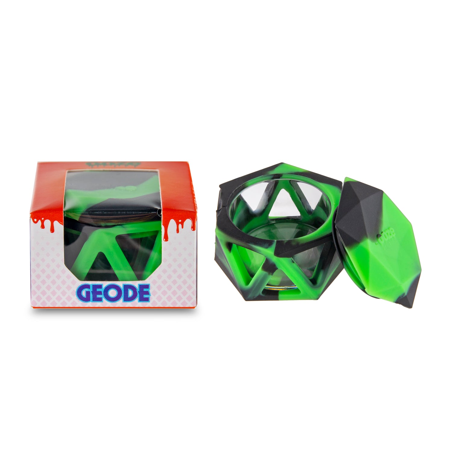 Protect your precious concentrates in a container made to resemble a gemstone! The Geode is an upgraded version of our typical silicone concentrate stash jar. The inner dish is made of glass, to perfectly preserve those delicious terpenes. The glass is encased with our heavy-duty silicone, making the Geode a super durable storage option.