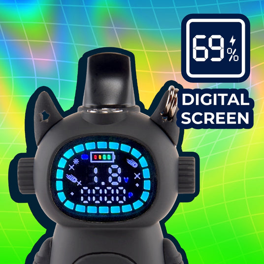 Check battery level, voltage, and how many puffs have been taken in an instant. Control everything with the knobs on the sides of the Bot's head.