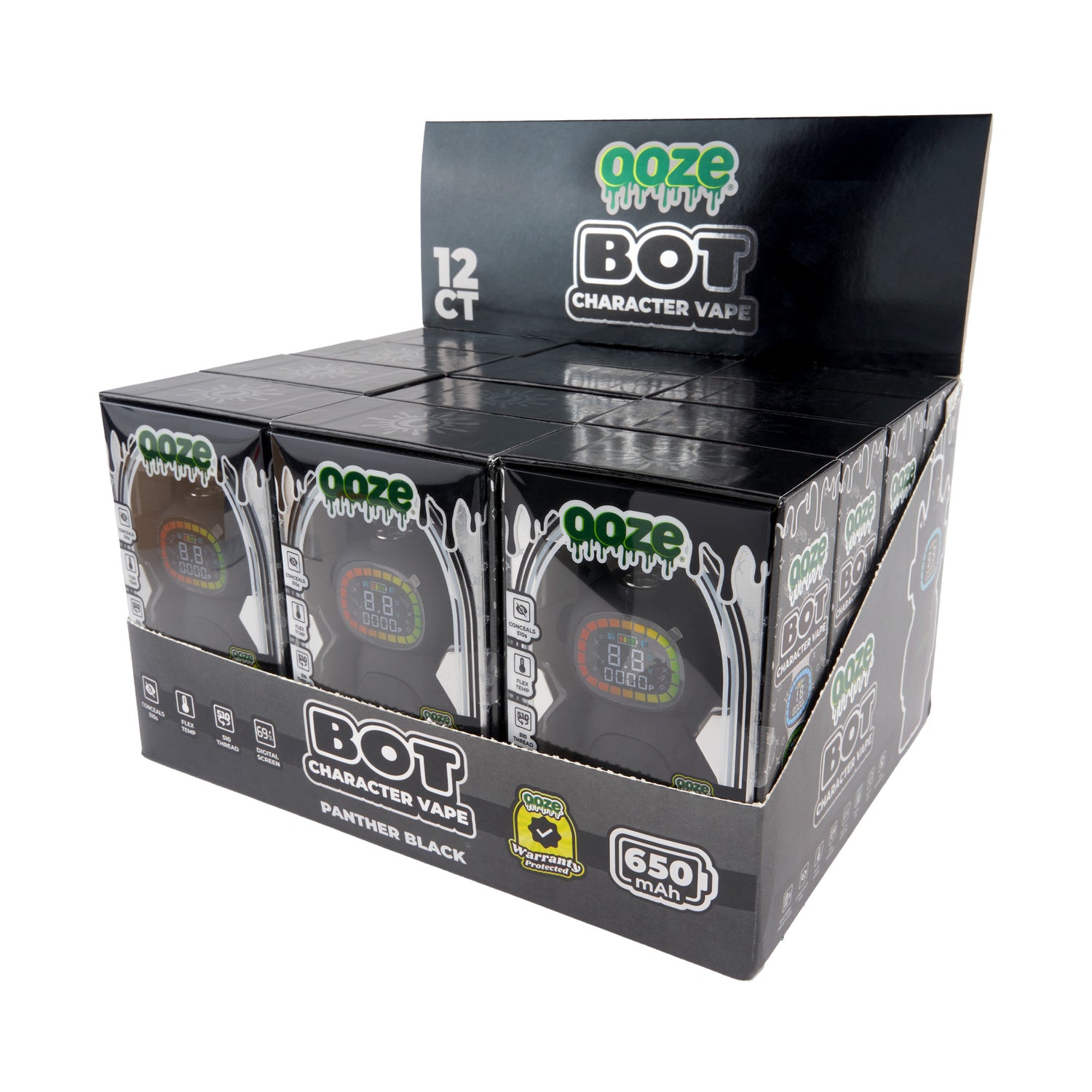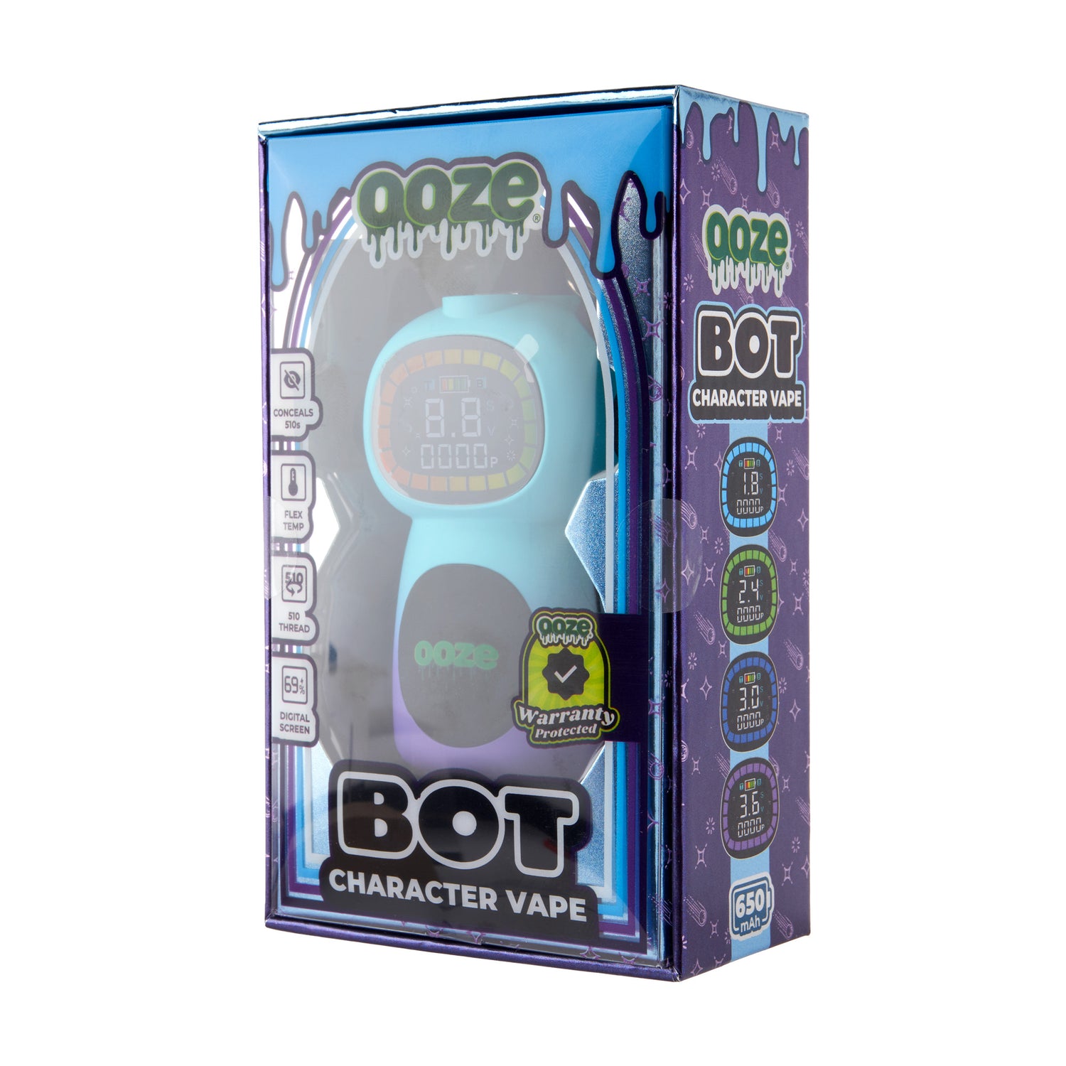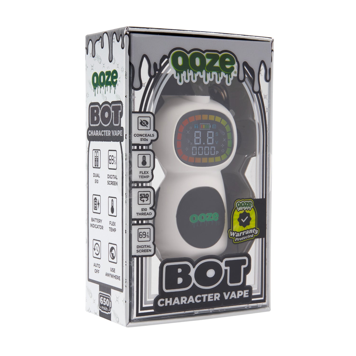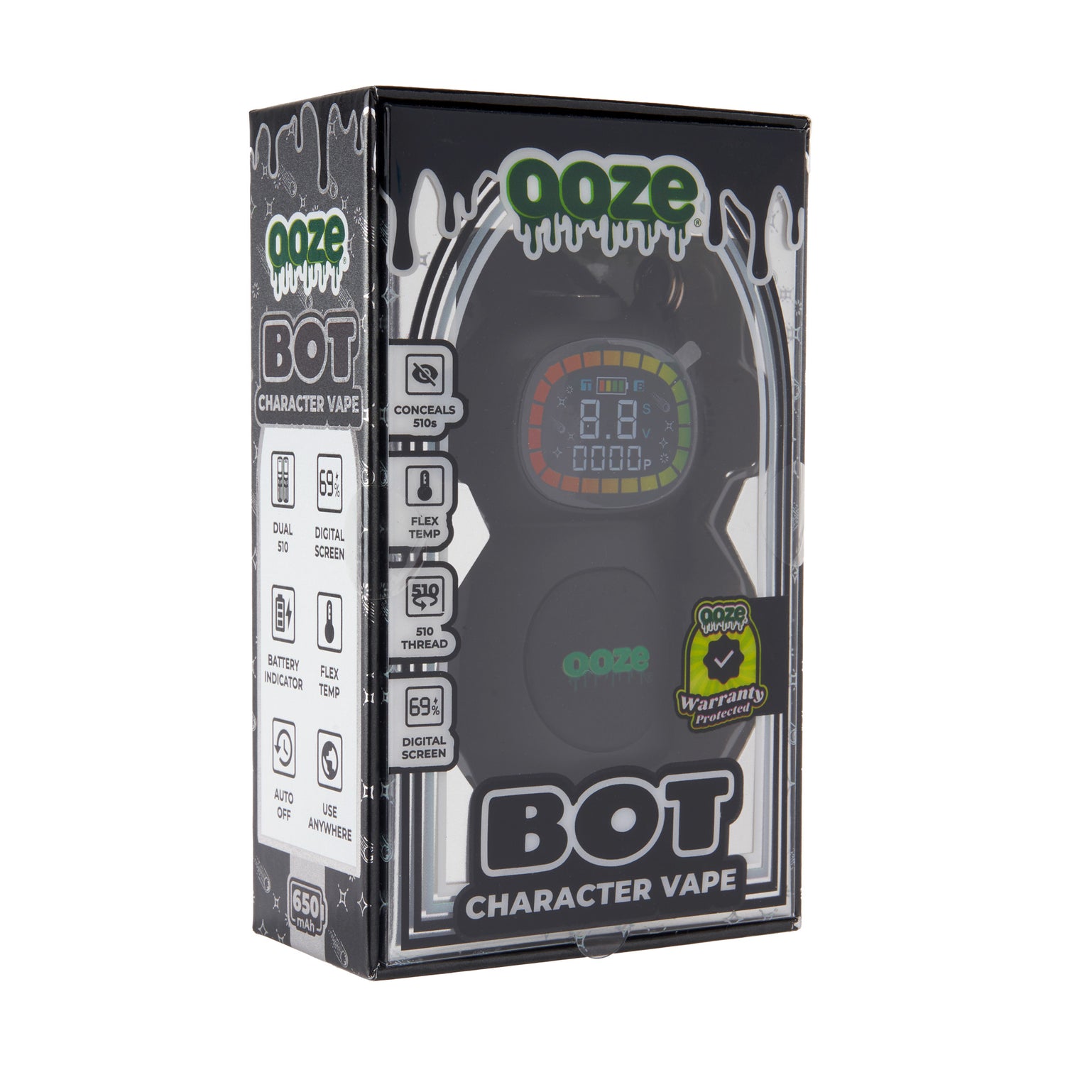 The Ooze Bot is a character-shaped vape battery with two 510 threads. This 650 mAh device is the ONLY character vape with a digital screen! It has a battery indicator, flex temp, and a puff counter.