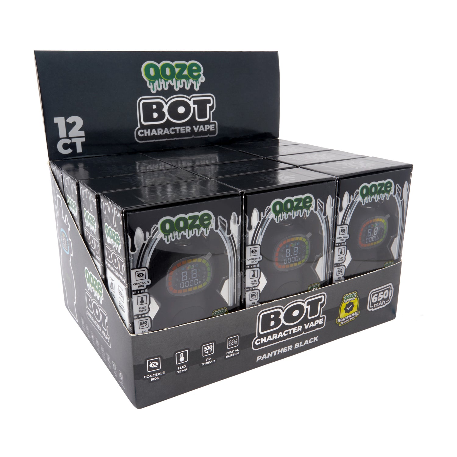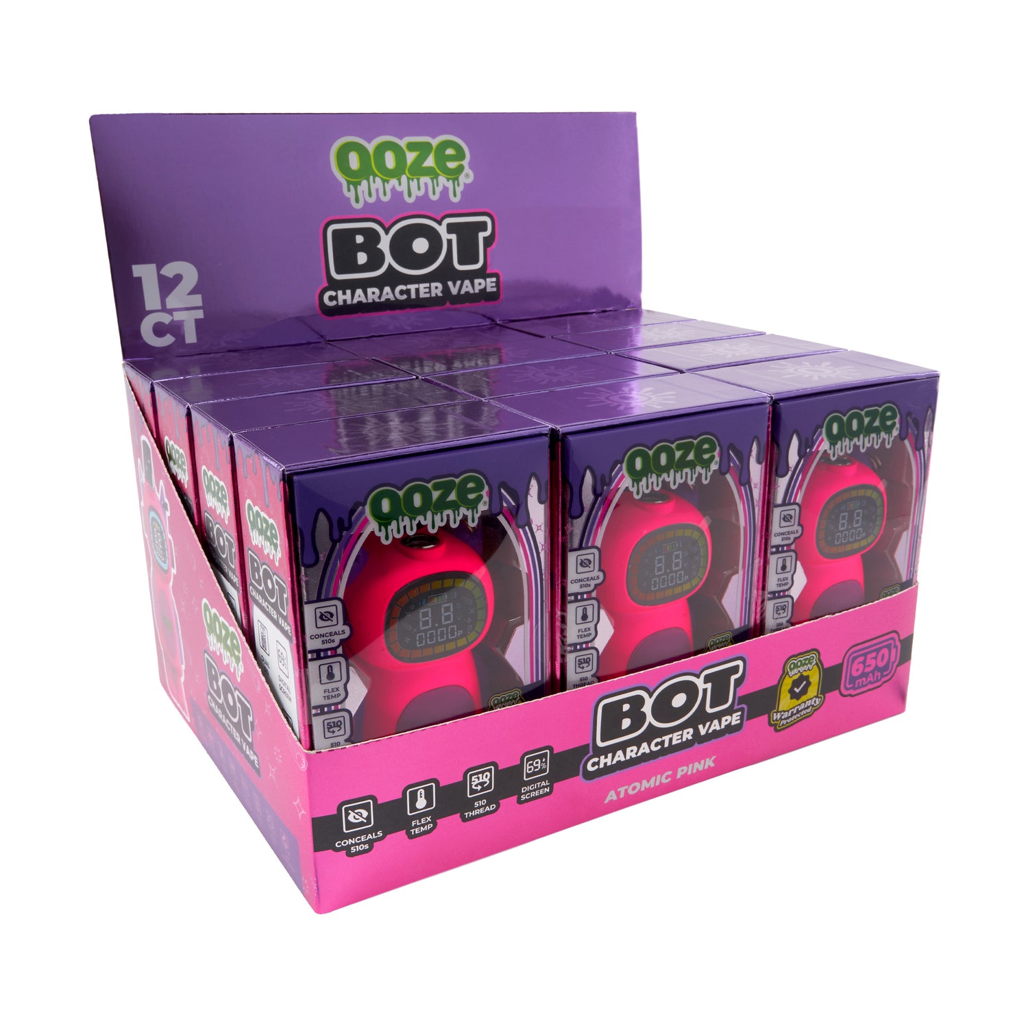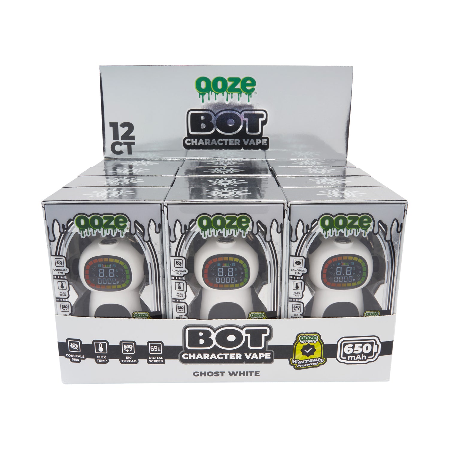 The Ooze Bot is a character-shaped vape battery with two 510 threads. This 650 mAh device is the ONLY character vape with a digital screen! It has a battery indicator, flex temp, and a puff counter.