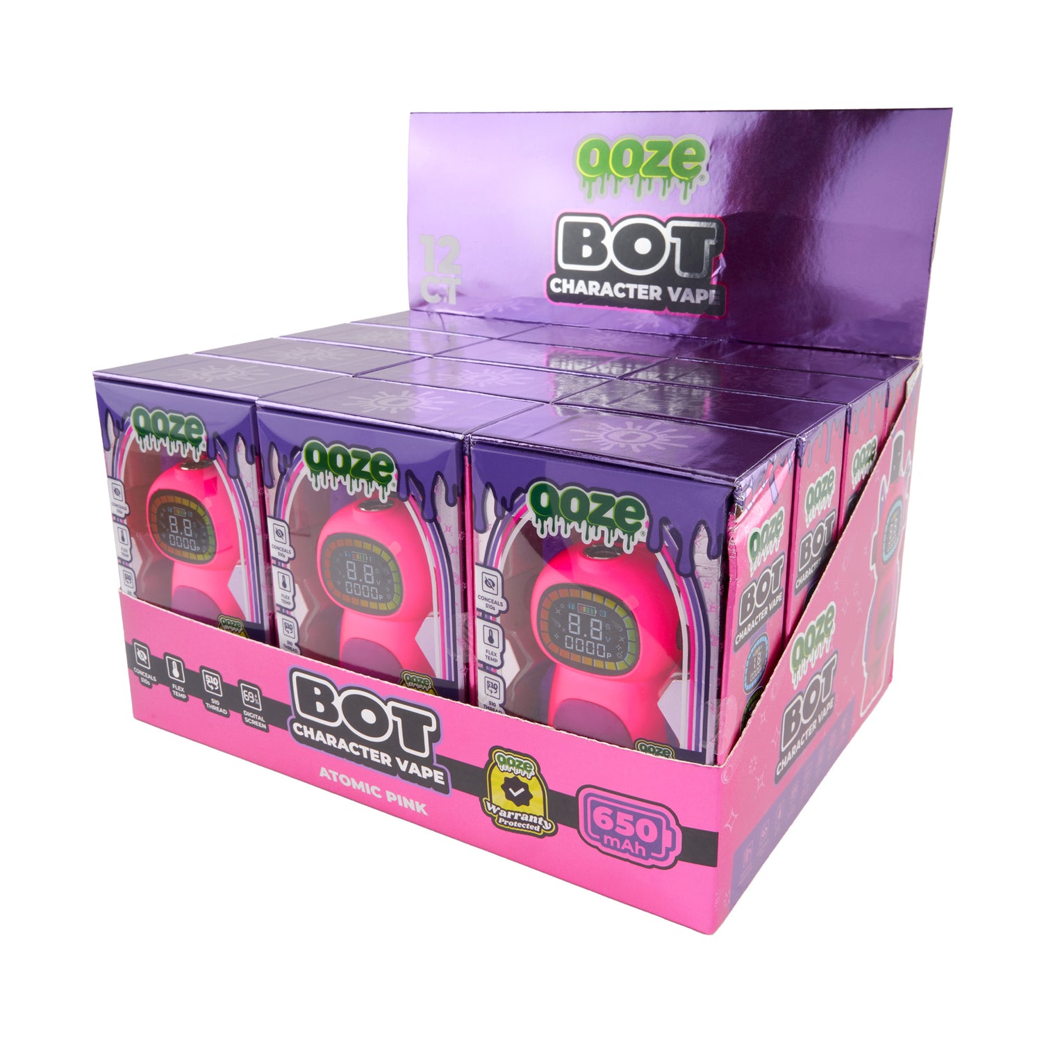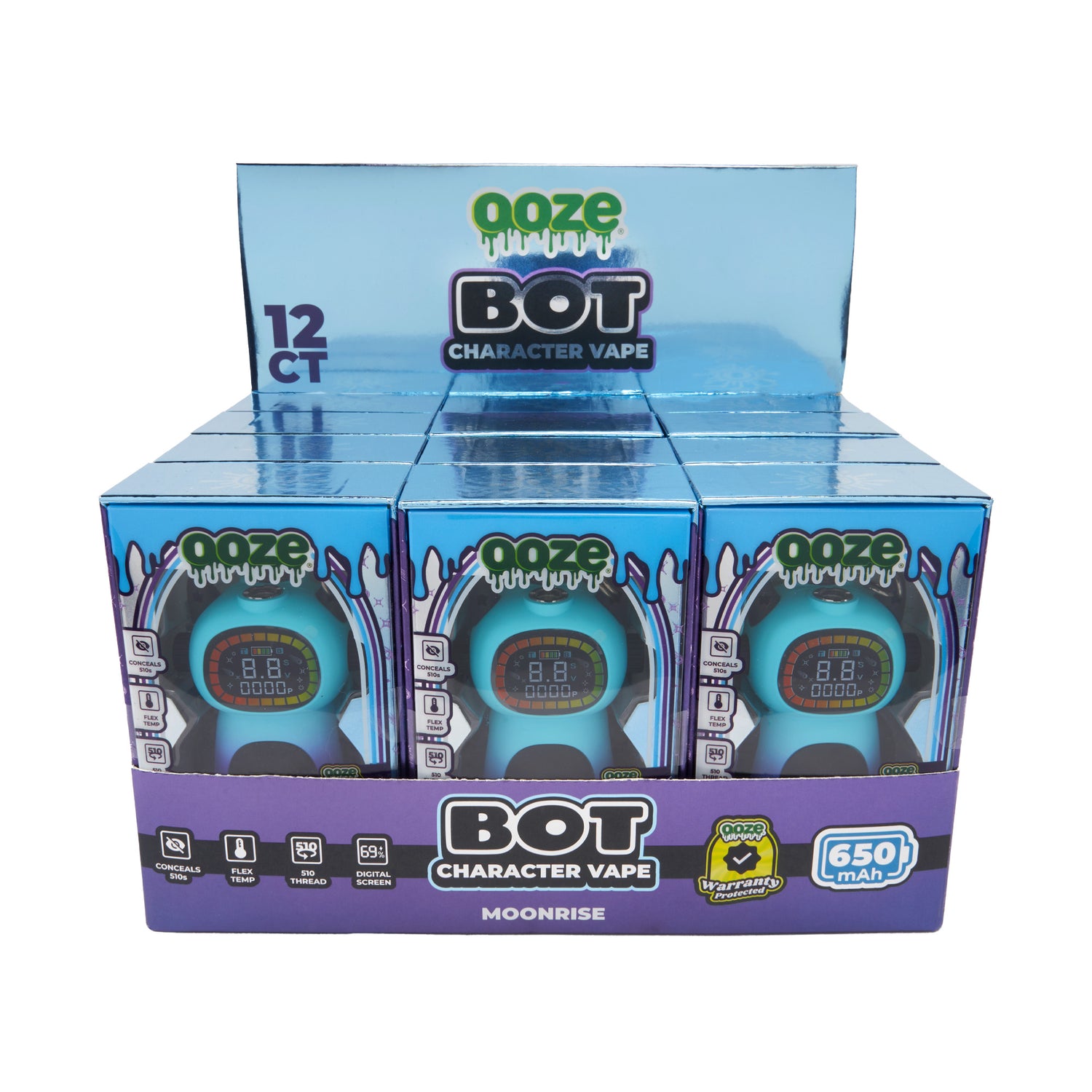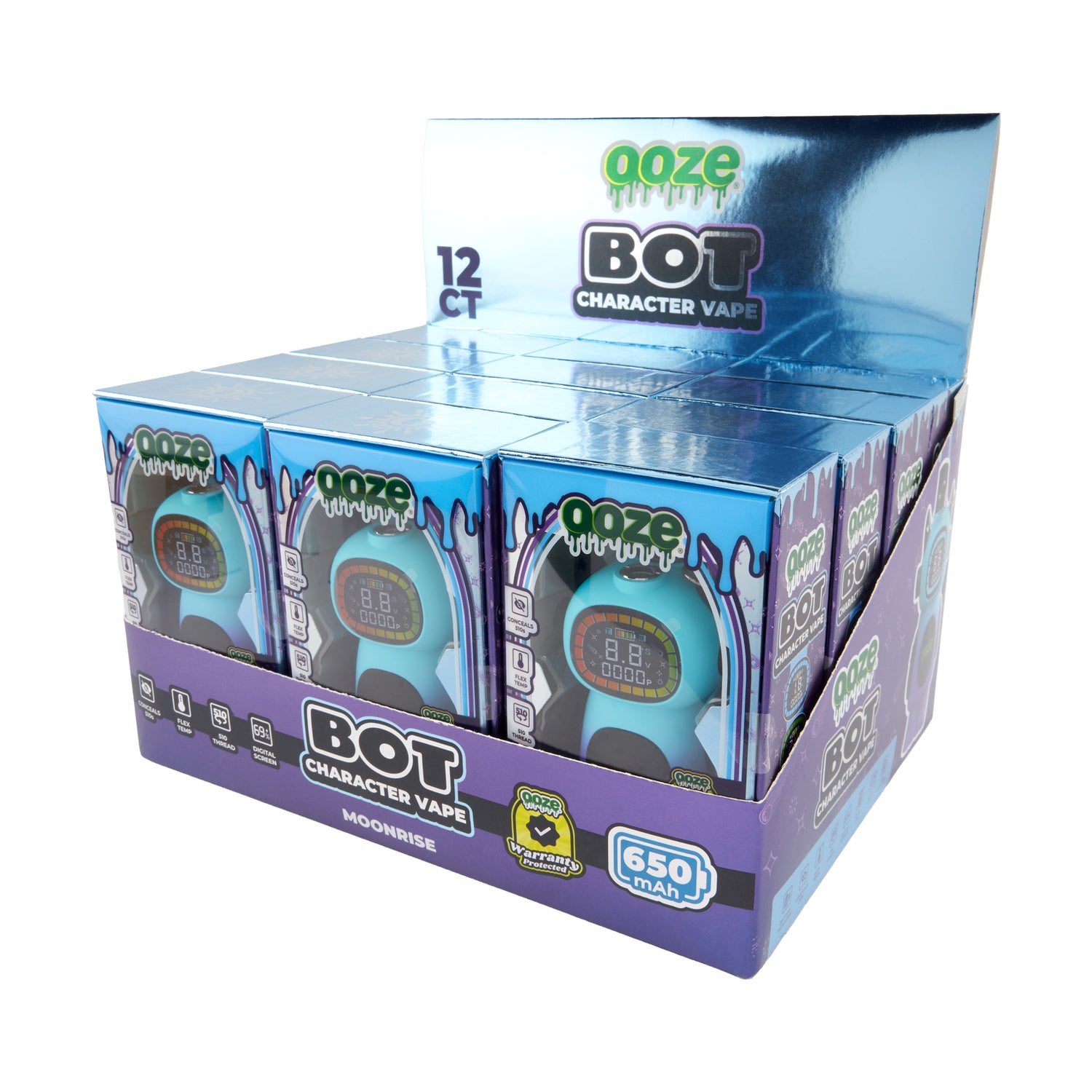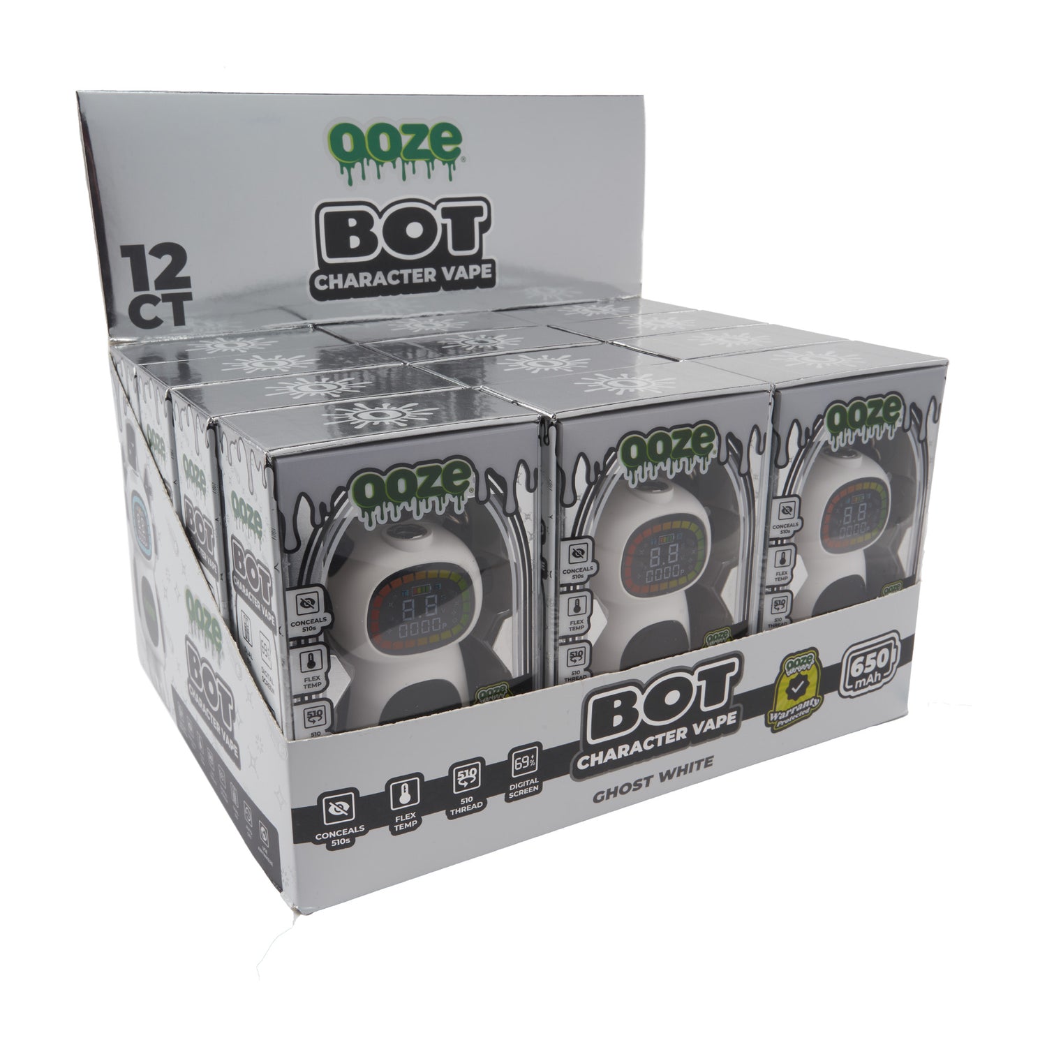 The Ooze Bot is a character-shaped vape battery with two 510 threads. This 650 mAh device is the ONLY character vape with a digital screen! It has a battery indicator, flex temp, and a puff counter.