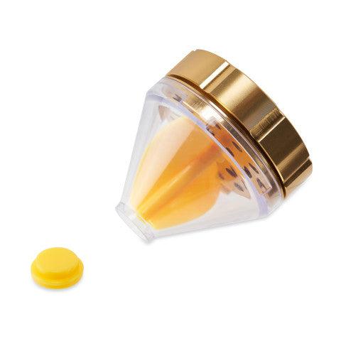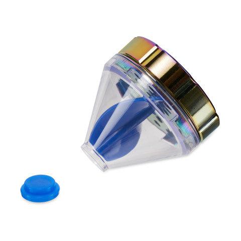 To use the Patas grinder, pull the magnetic lid from the device. Load a nug in between the razor sharp teeth, replace the lid and twist. As the weed is ground up, it falls through the holes into the clear plastic funnel. Remove the small rubber stopper at the tip and get a bowl, rolling paper, or rolling tray ready. Continue turning the lid to spin the plastic agitator, dispensing the ground bud exactly where it’s intended to go. The Patas grinder is great for on the go use thanks to its small size. These have a unique shape that is intriguing on a shelf, as they rest with the lid facing down.