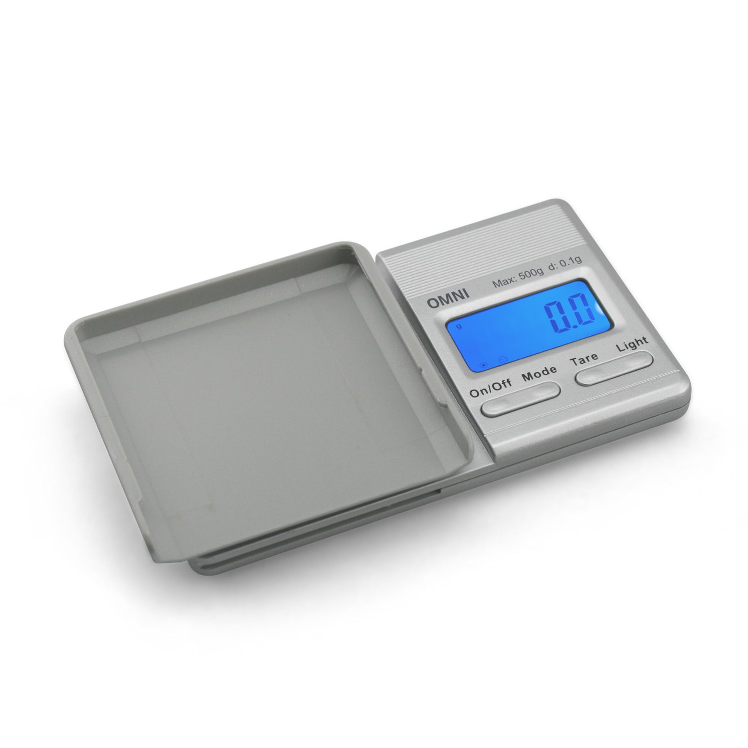 The OMNI digital mini scale features a sleek design with a sliding cover that doubles as a tray. The large LCD screen features a programmable back light for clear results in any lighting condition. The elegant design makes this easy to slide in your pocket or bag, and works perfectly in the kitchen and for weighing medications, jewelry, and other items that require incredibly accurate measurements.