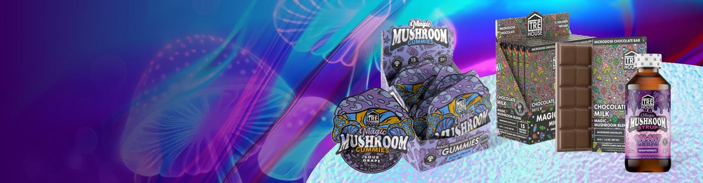 In addition to our popular Tre House products, we encourage you to explore our full range of mushroom offerings. Our selection features magic mushroom items, chocolates, and a proprietary blend of mushroom extracts for unique health benefits and mind-altering experiences.