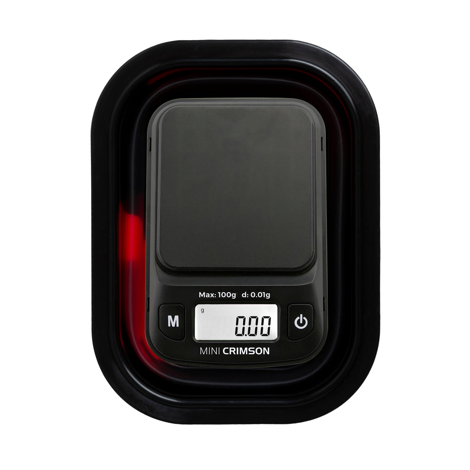 The Mini Crimson digital mini scale is a powerful pocket scale that includes a collapsible silicone bowl and latching cover, which makes it incredibly versatile and ideal for a wide range of uses. The bowl is made of food-grade silicone, making it dishwasher safe, microwave safe, and of course safe to use with food! The bowl flattens when not in use, creating a snug-fitting case to safely store your Mini Crimson scale in. The matching plastic cover has a vent, and a latch to lock the scale inside until you’re ready to weigh.