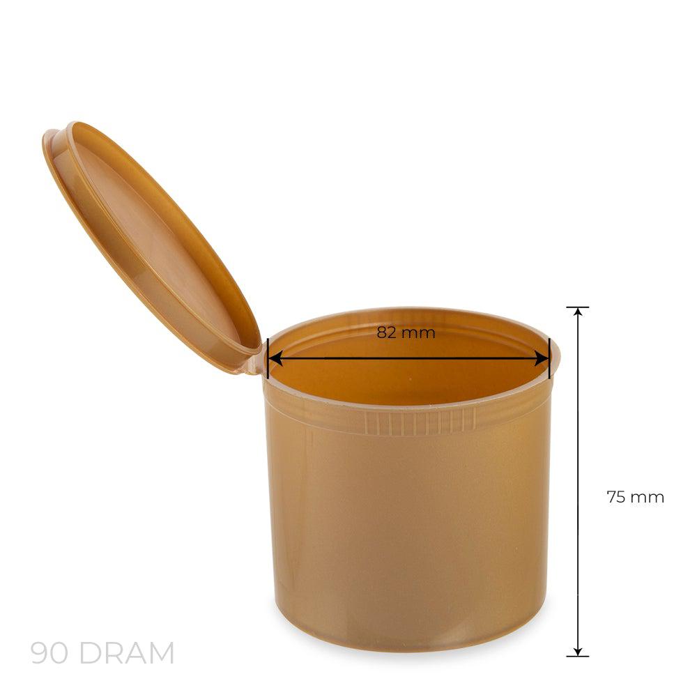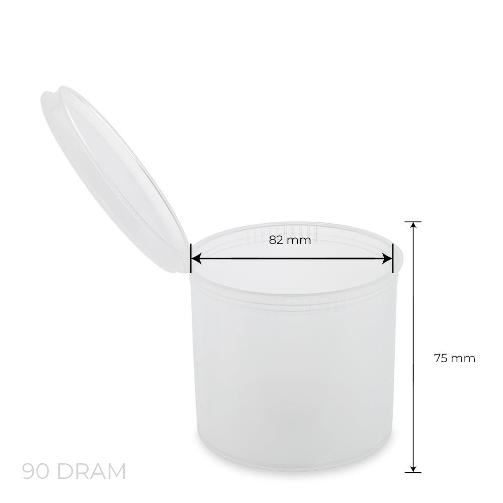 - 90 Dram (not child resistant) - 45 Bottles per case - 2.87" deep and 3.16" wide
