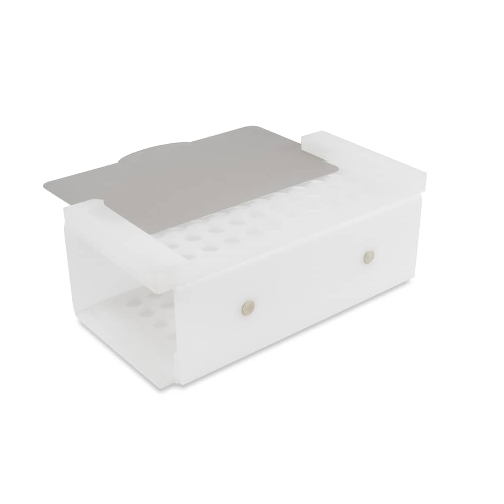 Keep the cone-filling process going constantly by using a Futurola Unload Station + with the Knockbox 3/50! Once the 50 cones are filled, transfer them to the Unload Station + to continue the process. They are held upright to keep the pack tight and prevent any from spilling. This station is compatible with standard cones, or roughly 84mm in length, up to Reefer size. Once the cones are transferred to the Unload Station, more empty cones can be loaded into the Knockbox to immediately start filling. This Knockbox accessory speeds up the entire system and eliminates unnecessary downtime.