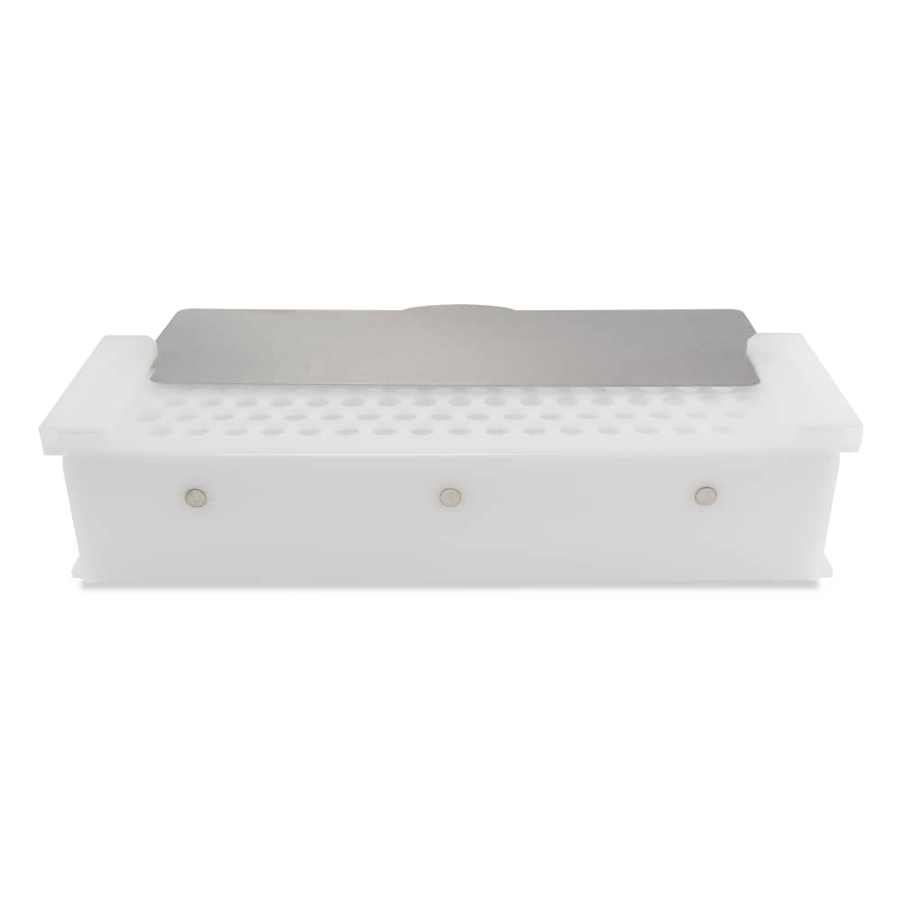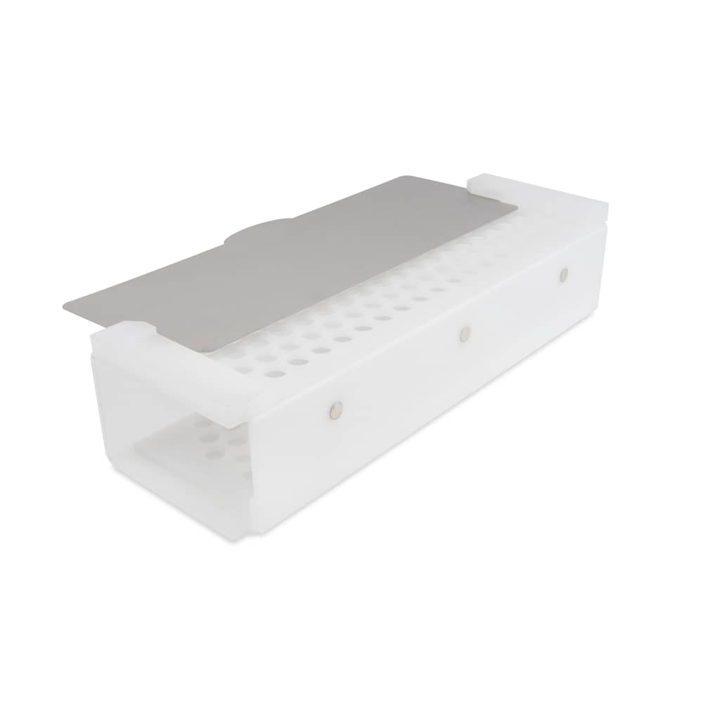 Keep the cone-filling process going constantly by using a Futurola Unload Station + with the Knockbox 3/100! Once the 100 cones are filled, transfer them to the Unload Station + to continue the process. They are held upright to keep the pack tight and prevent any from spilling. This station is compatible with standard cones, or roughly 84mm in length, and Slender size. Once the cones are transferred to the Unload Station, more empty cones can be loaded into the Knockbox to immediately start filling. This Knockbox accessory speeds up the entire system and eliminates unnecessary downtime.