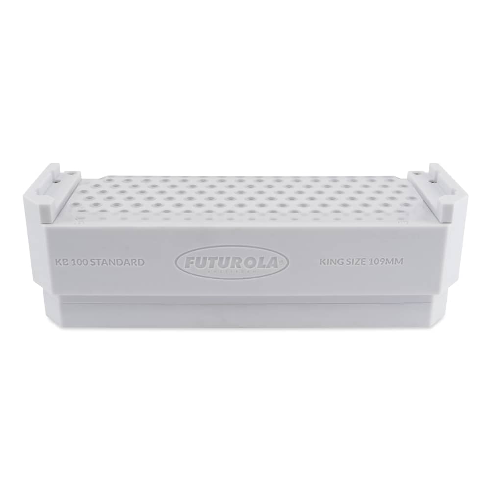 The Futurola Dutch Crown Device is the quickest and easiest way to finish the cone-filling process with the Futurola Knockbox. The Dutch Crown Device gives each cone in the machine a tight Dutch Crown folded top to seal the end. This device is compatible with king-size pre-rolled cones and works with the Futurola Knockbox 3/100.